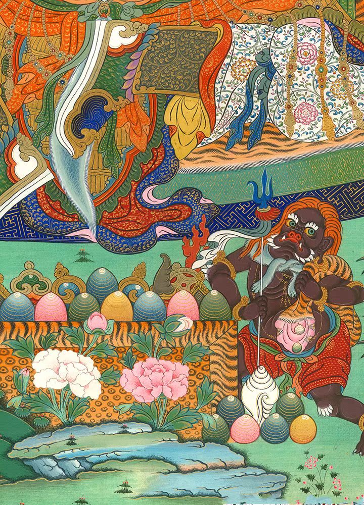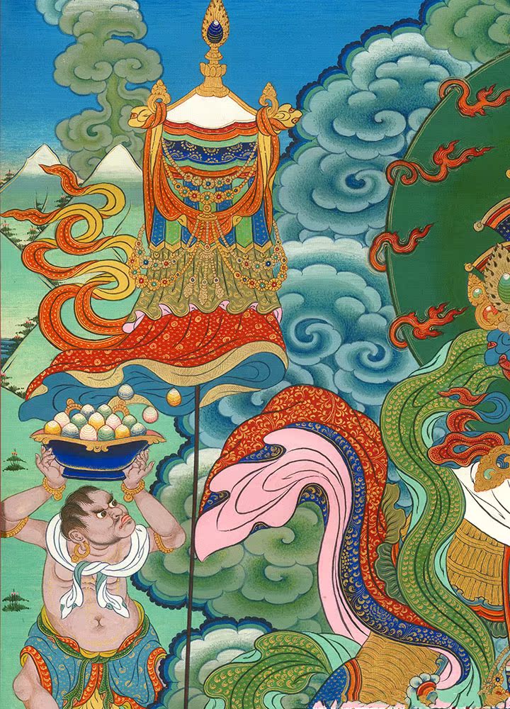 唐卡的裝裱款式有很多種,我們選用了最為傳統的一種,這種裝裱方式多為寺廟使用,代表的意義也很殊勝。