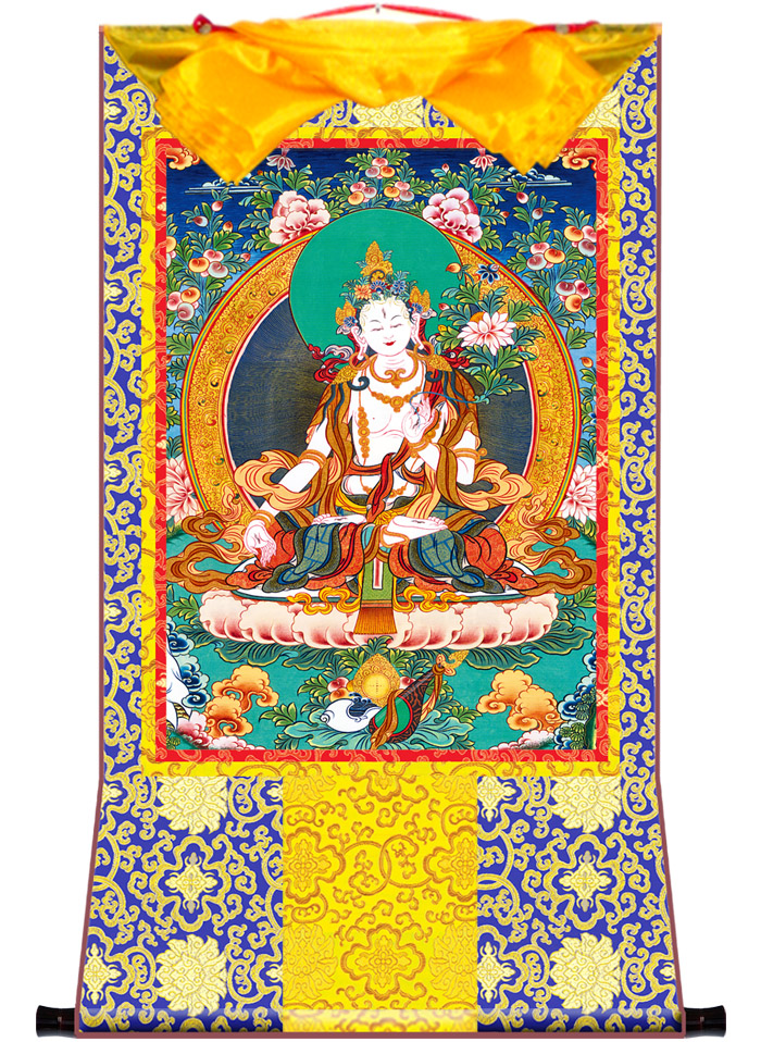 訂做如意惺特價/清宮御用唐卡錦緞印刷精品畫像/A白度母佛像唐卡