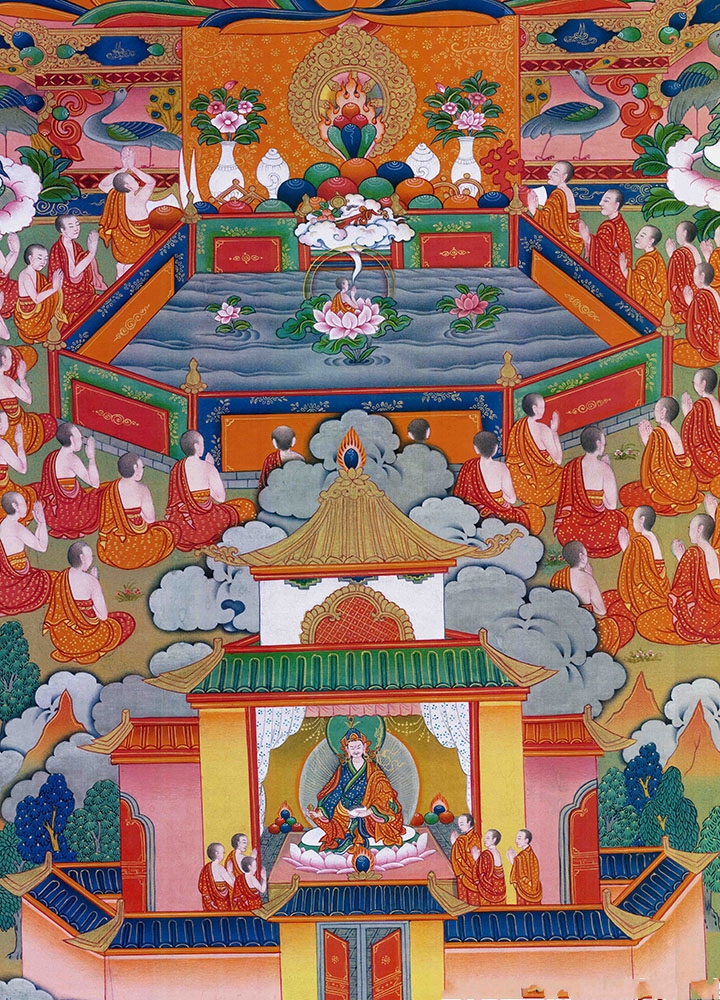 唐卡的裝裱款式有很多種,我們選用了最為傳統的一種,這種裝裱方式多為寺廟使用,代表的意義也很殊勝。