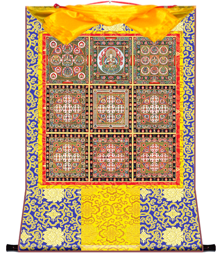 | 本公司大部分商品6一10天到貨。不接急單。急單的客戶請不要下單。感謝諒解與合作! 訂做0.6m精品/清御用錦緞/月輪西曼茶果/唐卡金剛界九會曼荼羅 訂做唐卡需要10天的貨期,付款后10天左右,如果特別趕的師兄請慎重拍!我們首先要保證質量才能!敬請諒解! 細節圖片展示