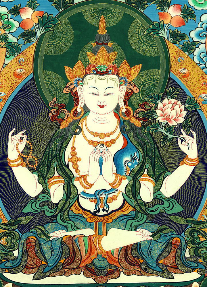訂做!60cm精品特價/清宮御用緞藏傳密宗畫像/B款唐卡四臂觀音