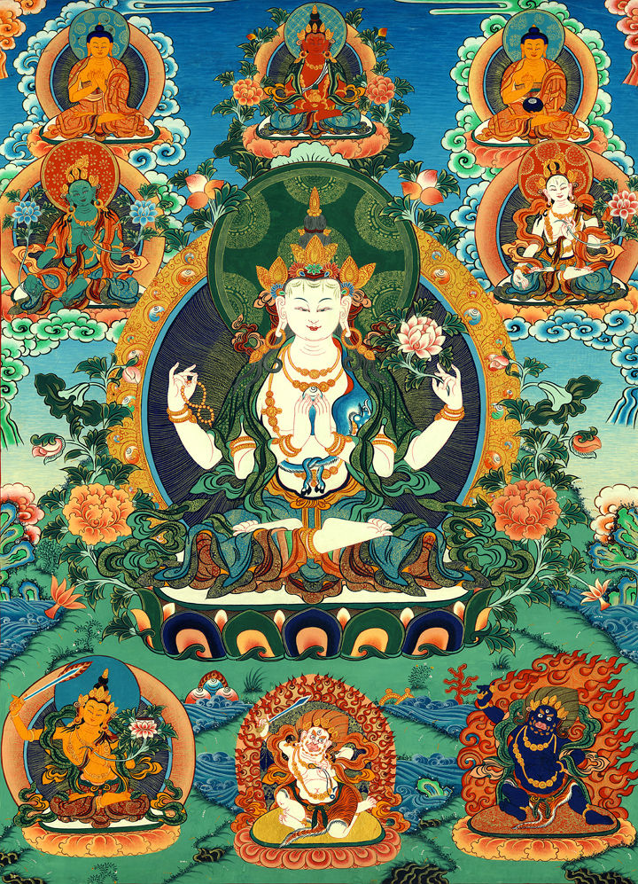 訂做!如意惺特價/清宮御用緞藏傳密宗畫像/A款唐卡四臂觀音