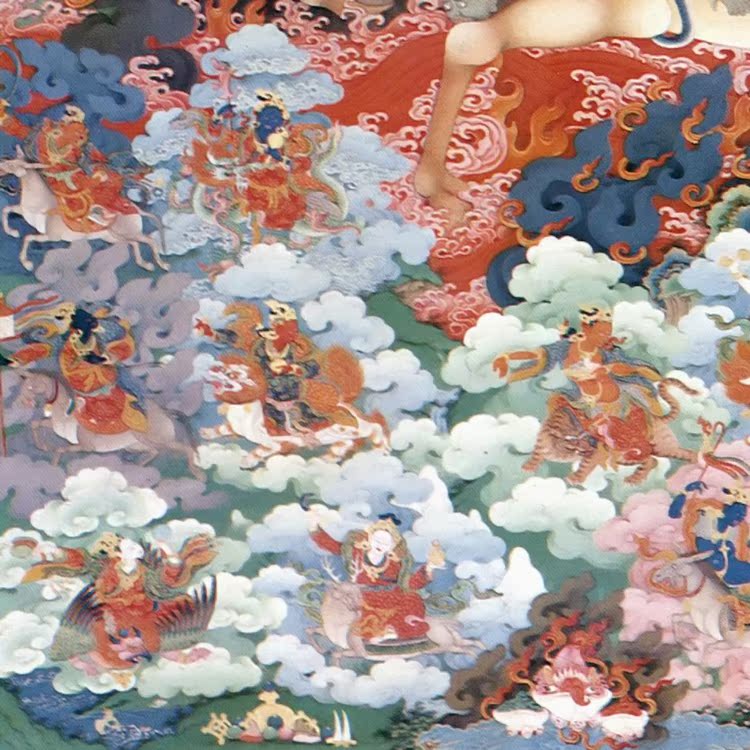 因是佛教圣相,所以我們選用的裝裱材料均是現在能有的最好的裝裱材料,正面選用定制的高檔棉織金絲錦緞很多仿制的是化纖材料,織繡藏傳佛教的富貴蓮花圖案,背面使用加厚仿真絲黃色綢緞布,手工精細裝裱而成,帶掛軸,照面,可直接懸掛到墻上。