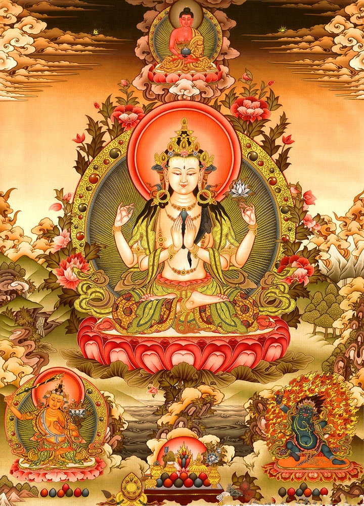 | 本公司大部分商品6一10天到貨。不接急單。急單的客戶請不要下單。感謝諒解與合作! 訂做!如意惺特價/清宮御用緞三怙主寂靜畫像/J款唐卡四臂觀音 訂做唐卡需要10天的貨期,付款后10天左右,如果特別趕的師兄請慎重拍!我們首先要保證質量才能!敬請諒解! 細節圖片展示