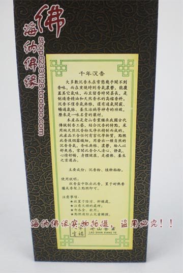 【產品名】 32.5CM千年沉香 【規格】 盒長約:34.5CM 寬約:9.3CM 高約:3.2CM 【顏色】 本色 【配料】 天然沉粉、粘粉 【相關介紹】 沉香之于宗教涵括佛教、道教、基督教、回教、天主教,是世界五大宗教共同認同的稀世珍寶。 佛教界對于沉香末、片,一般用于參禪靜坐或誦經法會熏壇、 灑凈、燃燒,較高級者則使用于飲香。沉香受體溫加熱,同時散發香氣以定神安邪靈。 沉香是一種很神奇的中藥材, 【功效】:活血,降氣,溫中,暖腎 中醫書中記載沉香對心血管疾病有很好的療效。有胃病的朋友,在發作時將沉香粉含在舌下,緩解胃痛,立桿見影。同時,只要將它放在鼻前聞聞,能夠防止暈船、暈車。 美真香系列“三藏”牌沉香產品,以其品牌保證用100%純正沉香木材料制作沉香系列產品,無添加任何合成香料。既是修行念佛者的寶物,也是收藏者的至愛。 水沉知識: 沉香,又名“沉水香”,“水沉香”,古語寫作“沈香”沈,同沉。 ! e- Y E0 J, b3 e6 d 古來常說的“沉檀龍麝”之“沉”,就是指沉香。沉香香品高雅,而且十分難得,自古以來即被列為眾香之首。 與檀香不同,沉香并不是一種木材,而是一類特殊的香樹“結”出的,混合了油脂樹脂成分和木質成分的固態凝聚物。而這類香樹的木材本身并無特殊的香味,而且木質較為松軟。據現在的研究,瑞香科沉香屬的幾種樹木,如馬來沉香樹、莞香樹、印度沉香樹等都可以形成沉香。 沉香不僅香氣典雅,還有通關開竅、暢通氣脈、養生治病等神奇的功效,歷來是一味重要的藥材,中醫典籍的相關記述也甚多,如《本草備要》謂之“能下氣而墜痰涎,能降亦能升,氣香入脾,故能理諸氣而調中,其色黑。體陽,故入右臂命門,暖精助陽,行氣不傷氣,溫中不助火。”《大明本草》謂之“調中補五臟,益精壯陽,暖腰膝,止轉筋吐瀉冷氣”;《本草綱目》謂之能“冶上熱下寒,氣逆喘急,大腸虛閉,小便氣淋,男子精冷。”6 yx3 M! { D |0 R% C 沉香不僅宜于熏燃,也可以研成粉末內服外用還可治療外傷并有鎮痛作用,或以沉香片、沉香粉沖泡飲用,皆為傳統的養生妙方。 |