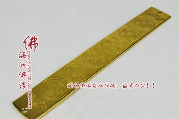 【相關介紹】 六帝尺係取精銅鑄製,以順治、康熙、雍正、乾隆及嘉慶、道光清朝興盛期間的六帝錢形象,兩側輔以招財進寶銅錢,作為鎮宅化煞、興旺家運的風水法器。「全銅六帝尺」係取六帝、金屬製品,來象徵「六白金」之意,以金來洩五黃土,使五黃煞失去其兇性,並藉由六帝錢及太極圖之力,鎮宅平安。 用法: 一.廁居中或廁沖床:陽宅第一兇最忌廁居中,廁所位于家宅中央位置或廁門沖床時,請在廁所門框上安上六帝尺及長布簾作化解 二.室內門對門形成斗口煞,主口角是非,家中多爭吵,門上加掛長門簾,門框上方安六帝尺 1.房門對廁所﹕主泌尿系統毛病.門上加掛長門簾,門框安上六帝尺廁所在房間內,穢氣沖房,廁門懸掛長門簾,門框安上六帝尺化解 另外,廁浴與床頭在一面墻容易影響運勢健康,床頭無法轉向為移位,可在床頭后方墻上床板安上六帝尺來阻隔化解 2.房門對廚房﹕主血光之災。門上加掛長門簾,門框安上六帝尺 或廚房與床頭在一面墻容易影響運勢健康,床頭無法轉向為移位,可在床頭后方墻上床板安上六帝尺來阻隔 床頭上方有窗戶,宜將床轉向或移位,避免睡在窗戶下頭疾.漏財,若無法移床位,可在床頭后方墻上床板安上六帝尺來阻隔化解 .神桌隔墻后為廚房,主人精神不佳,肝火旺脾氣大,脊髓也會不好,若無法將神桌移至其它適合位置,則暫于神桌后方隔墻后的廚房墻上 安置六帝尺擋化,將氣場分隔開來! 3.房門對房門:主口舌是非。二門正對選擇其中一門懸掛六帝錢尺及門簾化煞,二門非正對門形成互切時,二門皆懸掛六帝錢及門簾化煞,懸掛在門框對切的門框上 4.大門對大門的斗口煞:在自家大門安六帝尺可化解大門對鄰居大門形成斗口煞! 三.二黑.五黃星為流年大兇煞,若果飛到大門,則主運滯,工作不順或犯血光,化解方法有很多種,其中一樣便是運用六帝尺 ,可于大門之門框或門坎位安置六帝尺化解 四.六帝尺以六帝古錢為主,鎏金尺為輔,在二黑及五黃大煞到大門時,在大門門框上安上六帝尺便能夠將五黃煞氣化解,使家運亨通,全家平安 五.廚房位子不理想,財庫低落,或是廚房爐灶擺放不佳..等,可在爐灶下方安置鎏金六帝尺化解,并可增進財運! 六.樓梯居中或樓梯向大門,退家運大漏財,在樓梯口安置六帝尺以形成無形屏障并旺財,若是樓梯對向大門可于進門處加設屏風玄關阻隔財氣外泄 七.神差,運勢不佳者或易受干擾者,或居住于醫院、墳墓、殯儀館、法場或廟宇附近者上班途中會經過,可在大門門框上安六帝尺以形成無形屏障,除了避免不好陰煞干擾,過濾不好磁場 八.門坎有大財:大門之門框或門坎上安置六帝尺,六帝尺為吉祥物,不單可招財吉祥,還能干擾磁場效力! 注:本店另有20CM、48CM六帝尺可供選擇 |