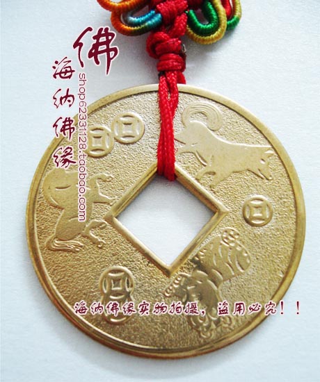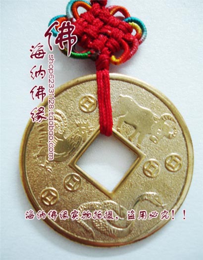風水吉祥用品 吊牌 吊飾 掛件旺財興商 1.5生肖銅錢吊飾(套)