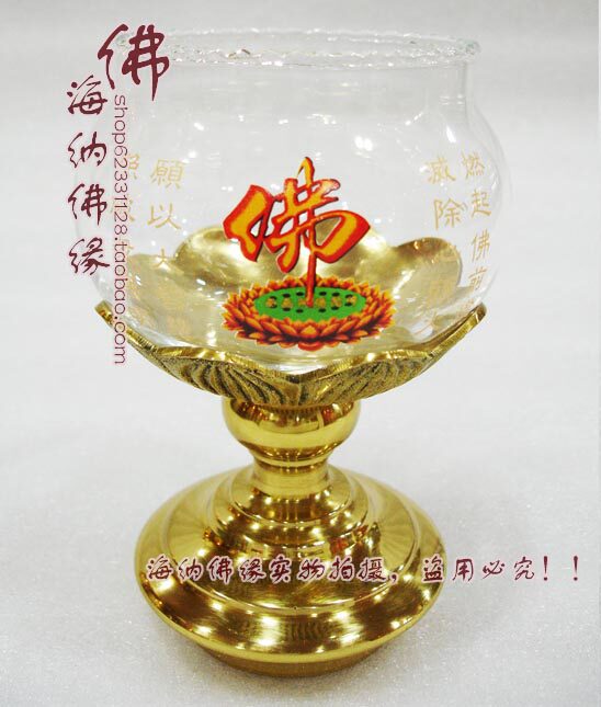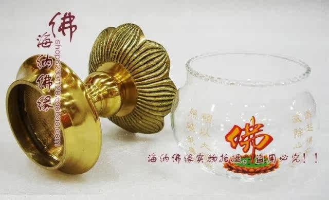 佛前燈 酥油燈長明燈 銅燈 供佛燈 5.5寸光身大杯玻璃油燈