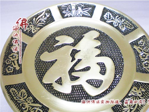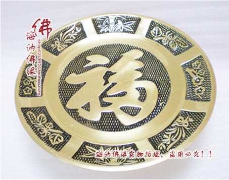 10英寸佛教用品 佛具 純銅供盤果碟 水果盤托盤 果碗 新款福字純銅果盤
