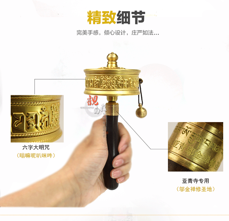 金色順滑靜音檀木亞青寺僧眾開光純銅六字大明咒手搖轉經輪轉經筒佛教