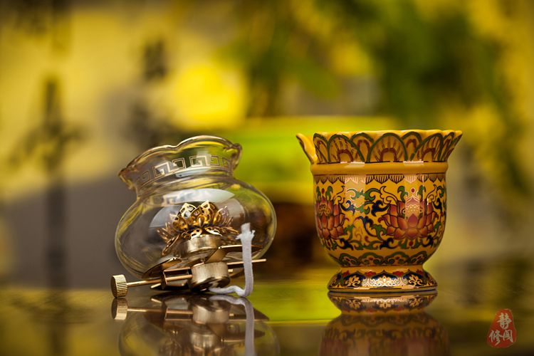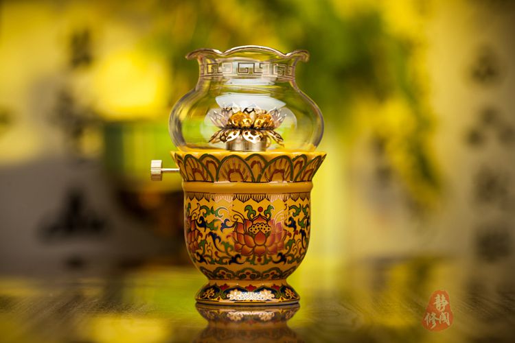靜修閣佛教用品批發唐彩黃長明燈油燈液體酥油燈供佛燈蓮花燈