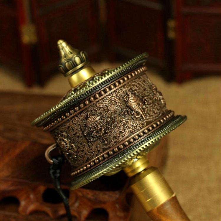 | 本公司大部分商品6一10天到貨。不接急單。急單的客戶請不要下單。感謝諒解與合作! 【名稱】八吉祥手搖轉經輪六字大明咒經文約10萬遍 【尺寸】經筒直徑約7.5cm,厚度約4.5cm,總長度約20.5cm、 【重量】重約0.52kg 【單位】1個 【工藝】復古做舊 【材質】鋅銅合金木質手柄 贈送電子計數器一個顏色隨機發送。 小店系廠家直接供貨,少了中間商家,故能如此低的價格出售,做工也挺不錯,請大家放心請購 溫馨提示:任何工藝品都沒有完美的,追求完美者慎購;另外此款為手工加工,每個批次之間可能會存在細小區別比如色差,但不影響美觀和質量,請以收到的實物為準 轉經輪底座需要另外購買,沒有送底座】