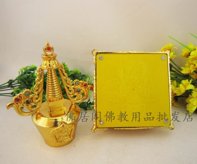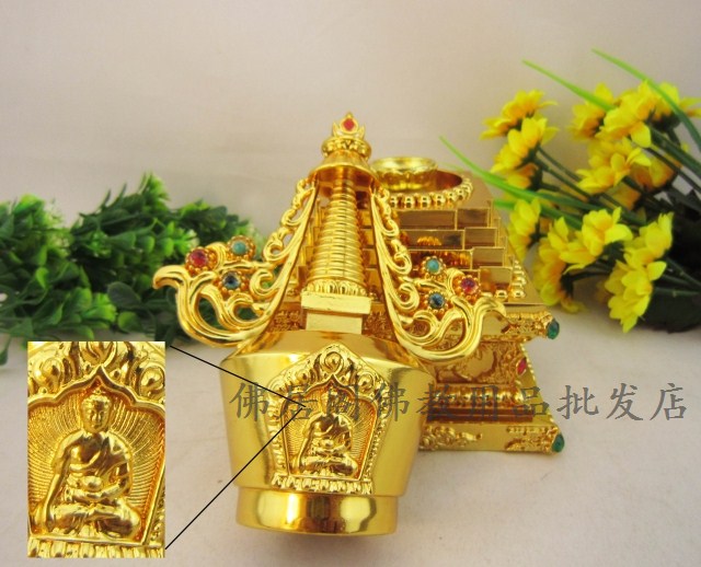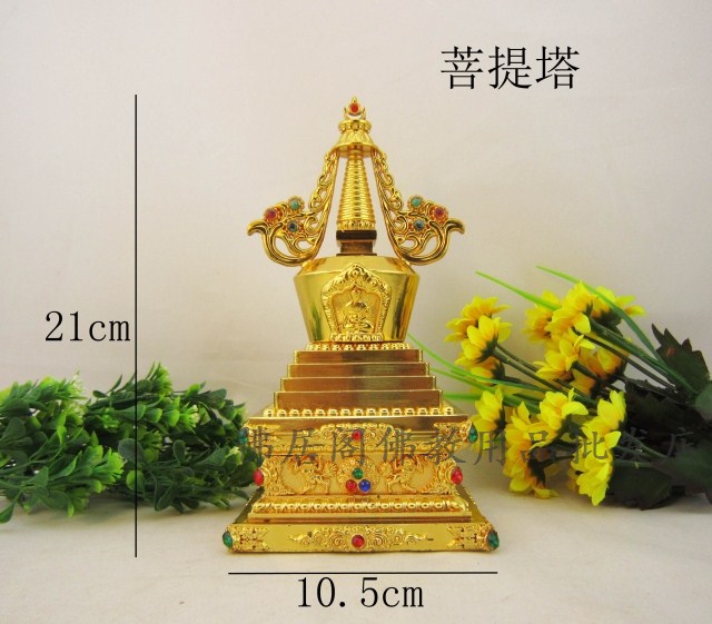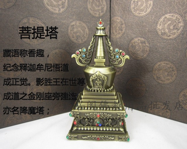 | 本公司大部分商品6一10天到貨。不接急單。急單的客戶請不要下單。感謝諒解與合作! 小店廠家直銷,價格優惠,特價結緣,歡迎師兄們過來請購; 寶貝名稱:舍利塔菩提塔 材質:銅合金鎏金底部可裝藏 規格:高21cm.寬10.5 顏色:金色、青銅色 重量:毛重約3.5kg 注:任何工藝品都沒有完美的,最求完美者請慎拍 此款有金色和青銅色兩種顏色提供選擇,如果對顏色有要求,可以下單時在線留言或者聯系我們客服告知;如果沒有要求,我們將隨機發送顏色款式