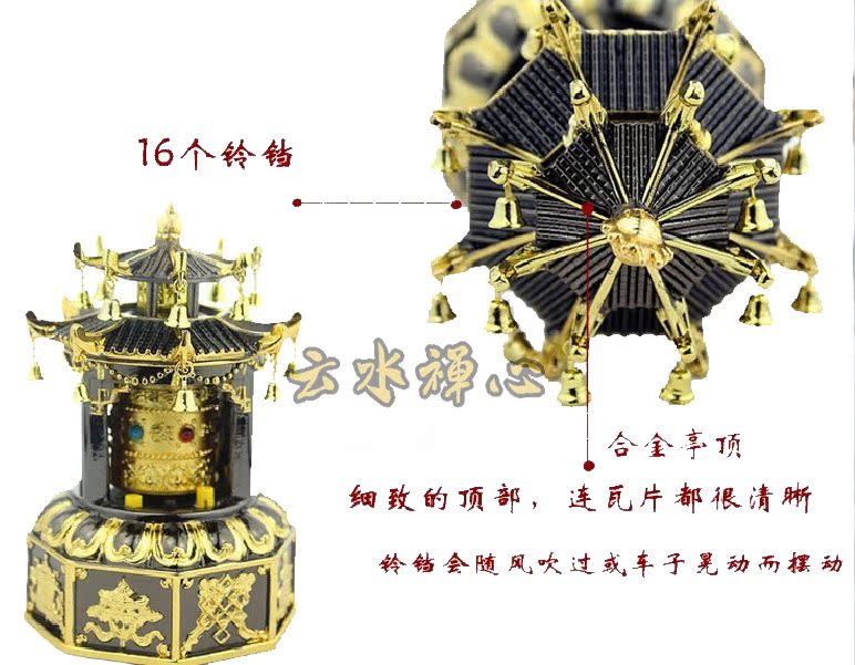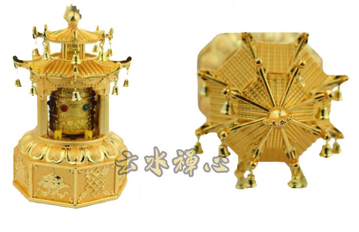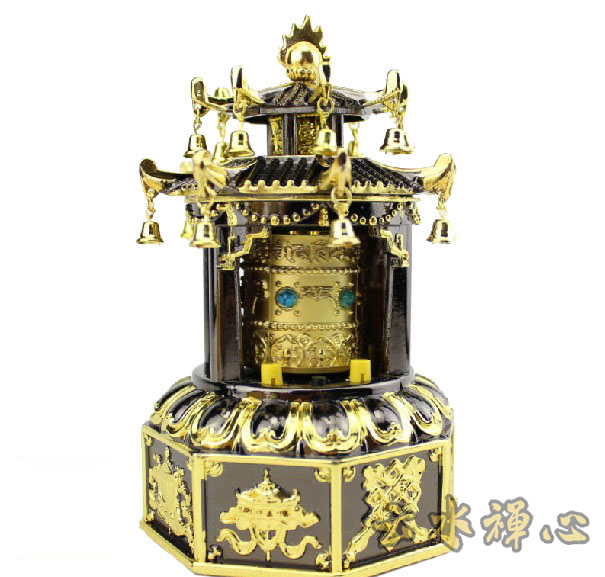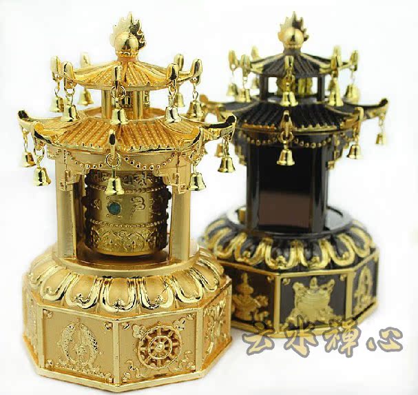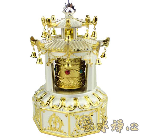 【規格】:長80mm 寬80mm 高122mm 【顏色】:金雙色、金銀雙色、槍金雙色 【動力】:太陽能、電池轉換 【旋轉方向】:順時針旋轉 不反轉 【附件】:說明書、防滑墊、電池兩節、雙面膠、禮盒 轉經筒又稱“嘛呢”經筒、轉經桶等,與六字真言六字大明咒有關,藏傳佛教認為,持誦六字真言越多,越表對佛的虔誠,可得脫輪回之苦。因此人們除口誦外,還制作“嘛呢”經筒,把“六字大明咒”經卷裝于經筒內,用手搖轉,藏族人民把經文放在經筒里,每轉動一次就相當于念誦經文一次,表示反復念誦著成百倍千倍的“六字大明咒”。有的還用水力、燈火熱能,制作了水轉嘛呢筒、燈轉嘛呢筒,代人念誦“六字大明咒”。 藏民手中搖動著的轉經筒,也叫“嘛呢輪”。 轉經筒有大有小,小的拿在手中即可。這種手搖轉經筒又叫作手搖嘛呢輪,質地有金、銀、銅等,也分大中小幾種。這種可以拿在手中的轉經筒主體呈圓柱形,中間有軸以便轉動。不僅圓筒上刻有藏傳佛教的六字真言,圓筒中間同樣裝著經咒。轉經筒制作一般都很精美,上面刻的經文和一些鳥獸等圖案除了其本來的意義外,還用漆繪彩色裝飾,如同工藝品 |
