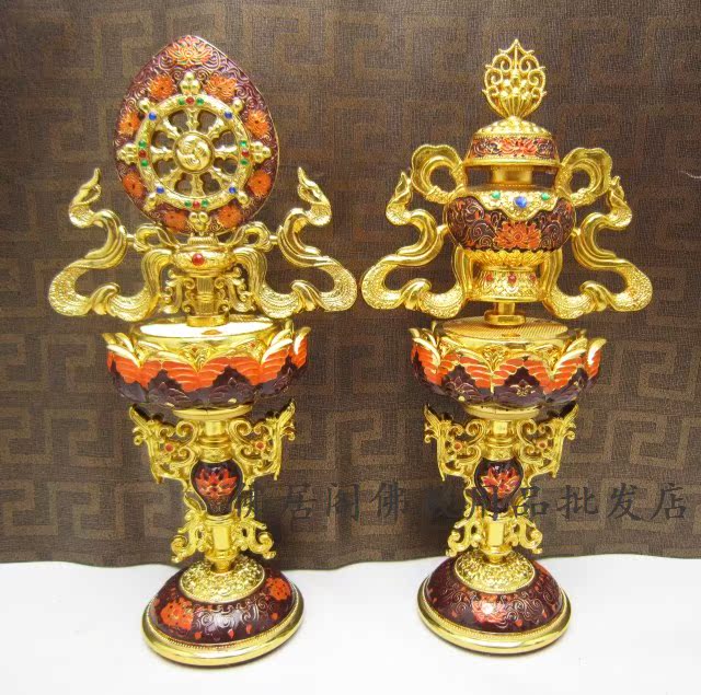 產品描述: 產品名稱:尼泊爾工藝新款琺瑯八吉祥擺件 產品規格:高約21厘米 總寬約10厘米 產品重量:毛重約8KG 產品材質:銅合金 產品工藝:景泰藍工藝 鍍金 做工精美 產品包裝:精美禮盒包裝 【八吉祥簡介】 八吉祥:它是佛教傳說中的寶物,由八種象征吉祥的器物組成,人們視它為吉祥之兆,故在中國傳統裝飾中應用很廣。 ?法螺:表示佛音吉祥,被比作運氣的象征。 吉祥八寶即八吉祥,又稱八瑞吉祥,八寶吉祥,藏語稱“扎西達杰”。 |