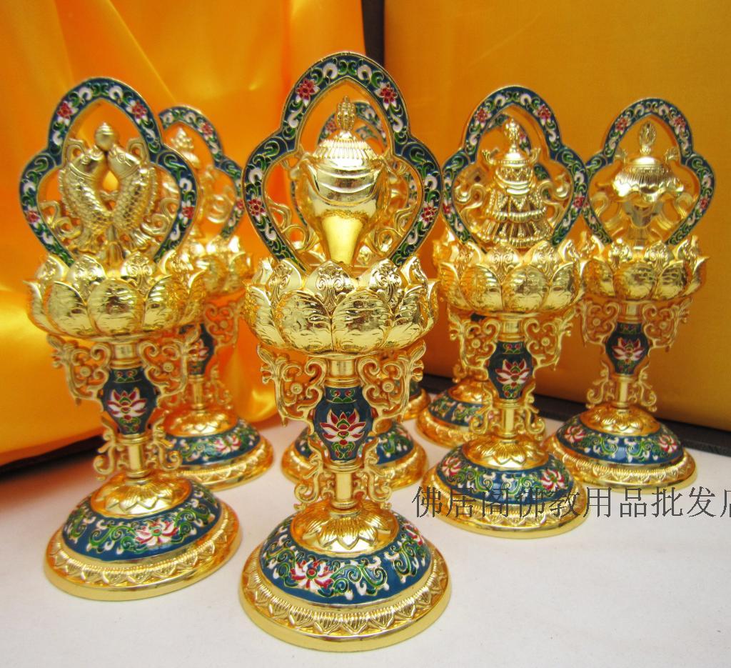 | 本公司大部分商品6一10天到貨。不接急單。急單的客戶請不要下單。感謝諒解與合作! 小店廠家直銷,價格實惠,現貨出售,不斷貨;原價446一套,現特價出售,方便結緣各位師兄 小店也有4.1寸新款:http://item.taobao.com/item.htm?spm=a1z10.3.17.24.abba85&id=& 【品名】八吉祥擺件 【規格】 7寸規格:高約:17.5CM 底座寬約:6CM 上面的寬是約:6.8CM 6.5寸規格:高約:16CM 底座寬約:6CM 上面的寬是約:6.8CM 4寸規格:高約9.7厘米;底座直徑約3厘米 6寸琺瑯八吉祥高15厘米 【材質】 鋅銅合金電鍍 溫馨提示:任何工藝品都沒有完美的,追求完美者慎拍;另外此款為手工組裝和手工涂彩,每個批次之間可能會有點不同; 7寸款式