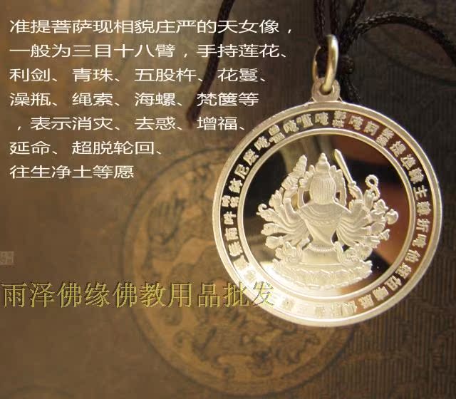 護身符 純銀準提鏡吊墜 925純銀準提佛母 純銀佛像 精美項鏈