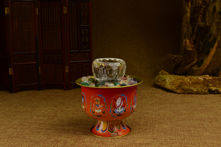 | 本公司大部分商品6一10天到貨。不接急單。急單的客戶請不要下單。感謝諒解與合作! 名稱:佛前八供特惠套裝 重量:約4.5kg 規格:杯口直徑約10cm,高約7.5cm大號 材質:合金彩繪 【套裝內容】 1、精美彩繪八供杯一套8個 2、香塔一個 3、海螺一個 4、純正香油一瓶 5、高檔精品花食子一對 6、水晶杯2個寬度約4.5厘米 7、七寶石約5.5斤小店也有硨磲可以配,如需硨磲請聯系客服 此款供杯為大號紅色款式,小店也有藍色杯子和黃色杯子的套裝組合出售,如有需要藍色的或者黃色杯子套裝,可以給我們留言或者直接聯系客服告知,沒有要求的,我們將默認發紅色款式