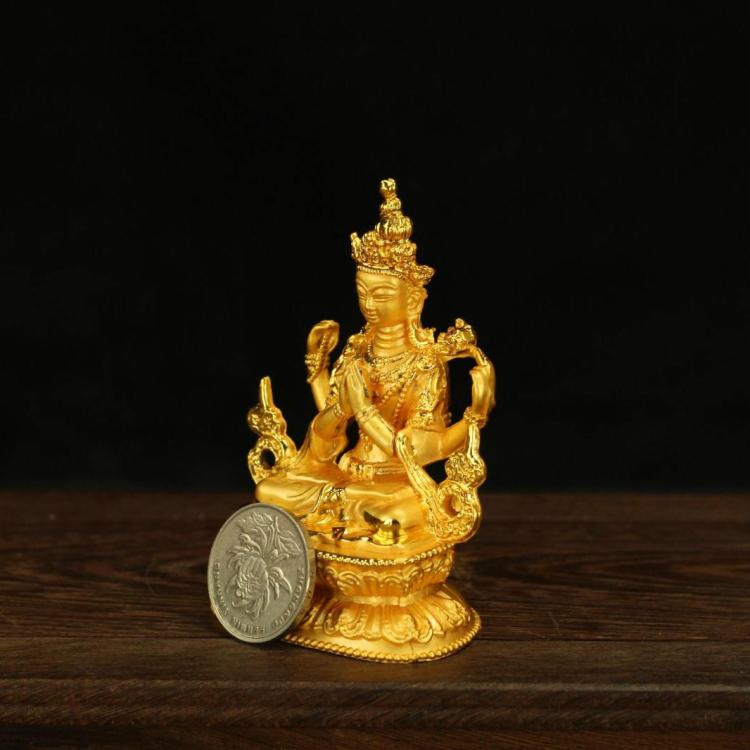 四臂觀音是雪域的守護神,藏人由老至幼家家戶戶,皆吟誦其六字大明咒:“嗡嘛呢叭咪吽”。廣大藏蒙佛教徒還把達賴喇嘛奉為觀音化身, 四臂觀音輿文殊菩薩、金剛手菩薩,合稱三族姓尊.代表大悲、大智、大力,為密乘行者人人必修的法門。