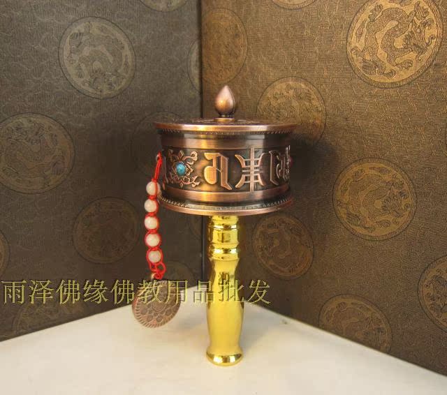 | 本公司大部分商品6一10天到貨。不接急單。急單的客戶請不要下單。感謝諒解與合作! 商品名稱:大五明專利手搖轉經筒中號/轉經輪/藏傳佛教用品/密宗法器 商品規格:經筒直徑7.8cm,高17.5cm 商品材質:主材質為合金 商品重量:600g 經卷遍數:六字真言10萬遍 生產工藝:連軸雙軸承雙軸承的作用-在轉動過程中起固定和小載荷摩擦系數,用來小摩擦,降低噪音,加強穩固性 此款有金色、青銅色、紅古銅色3種顏色提供選擇,如果對顏色有要求,可以下單時在線留言或者聯系我們客服告知;如果沒有特別要求,我們將隨機發送顏色款式; 注:顏色工藝品都沒有完美的,此款特價結緣,最求完美者慎拍
