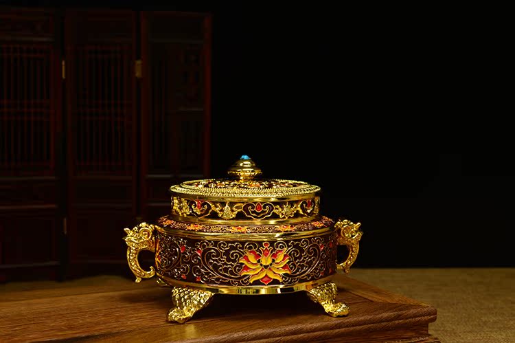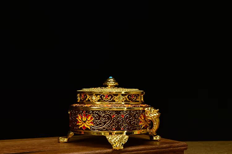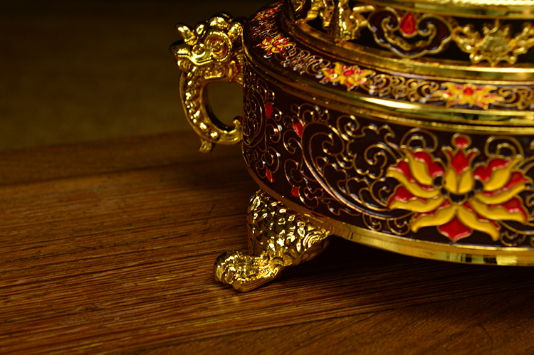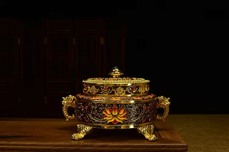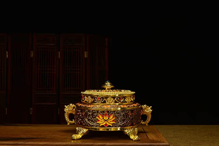 佛具 佛教用品純銅 鎏金 琺瑯瓷 景泰藍 特級 盤香爐