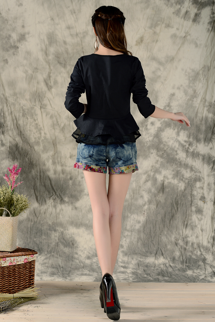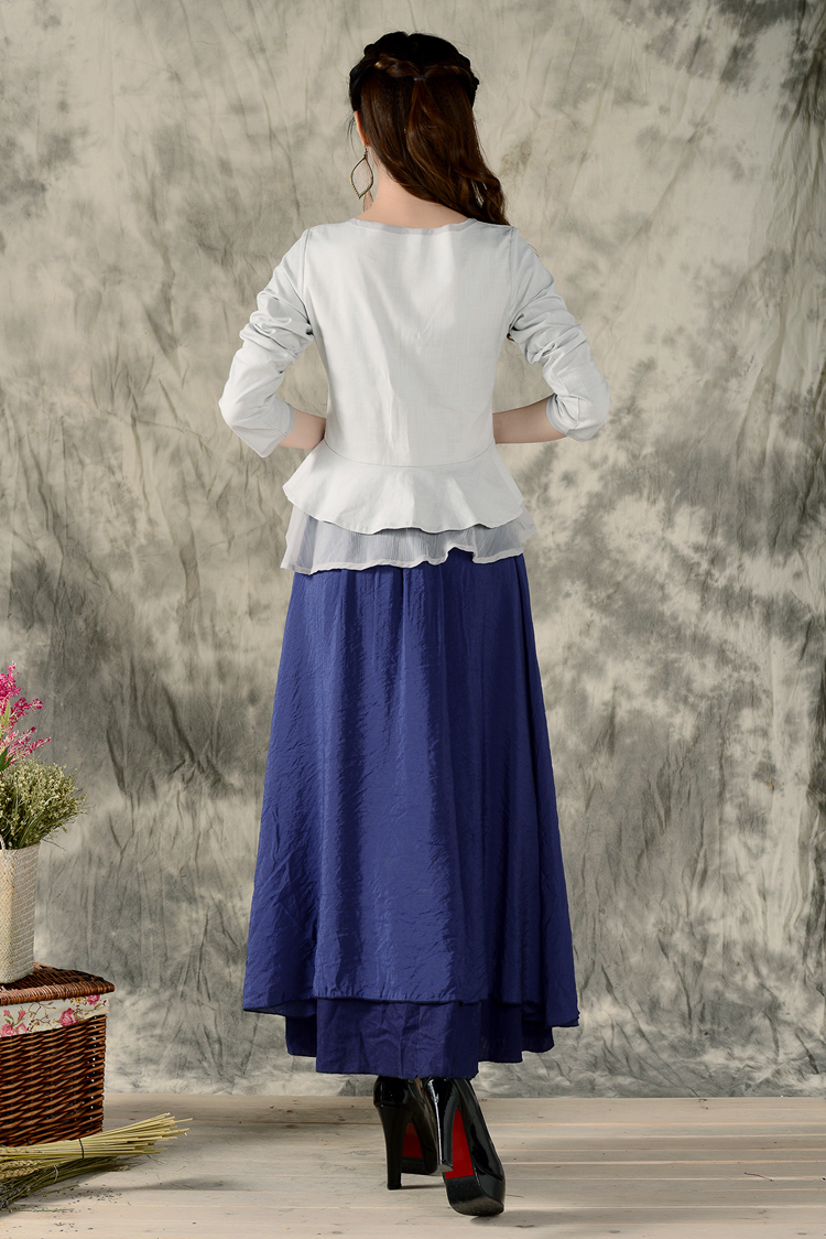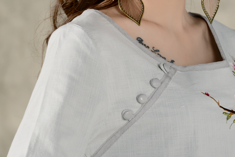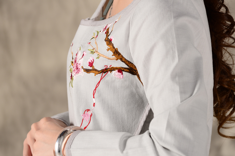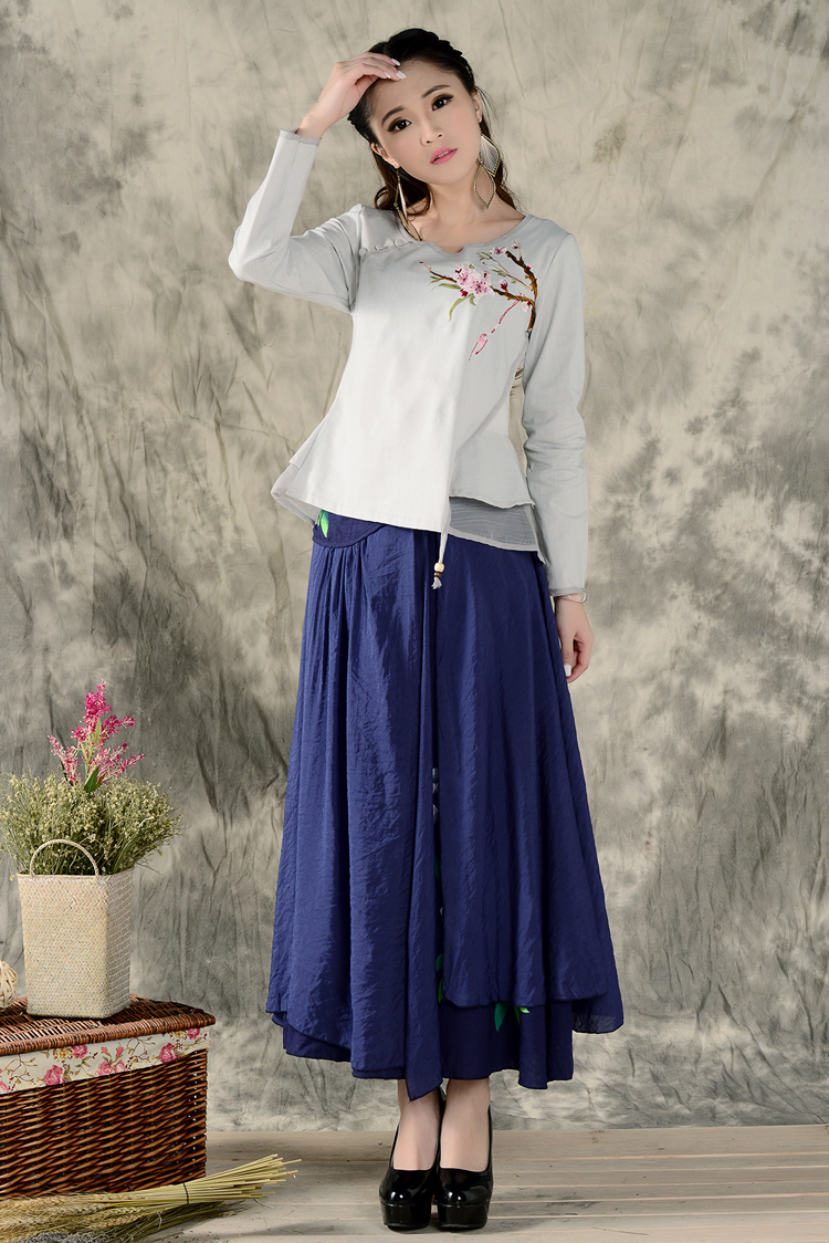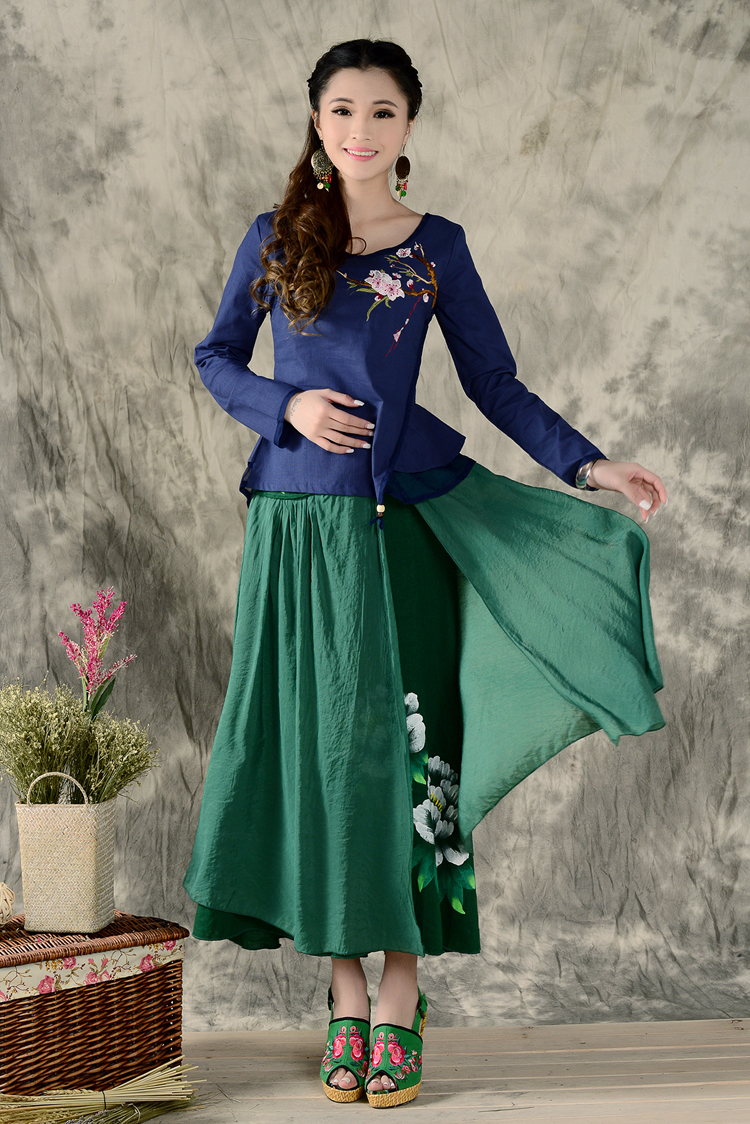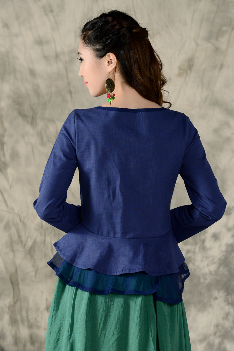 黑色XL秋裝民族風新款長袖繡花特色襯衣女裝 亞麻修身棉麻繡花套頭襯衫