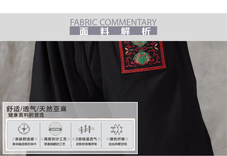 黑色XL亞麻春秋新款民族風女裝棉麻繡花中式復古寬松盤扣長褲燈籠褲