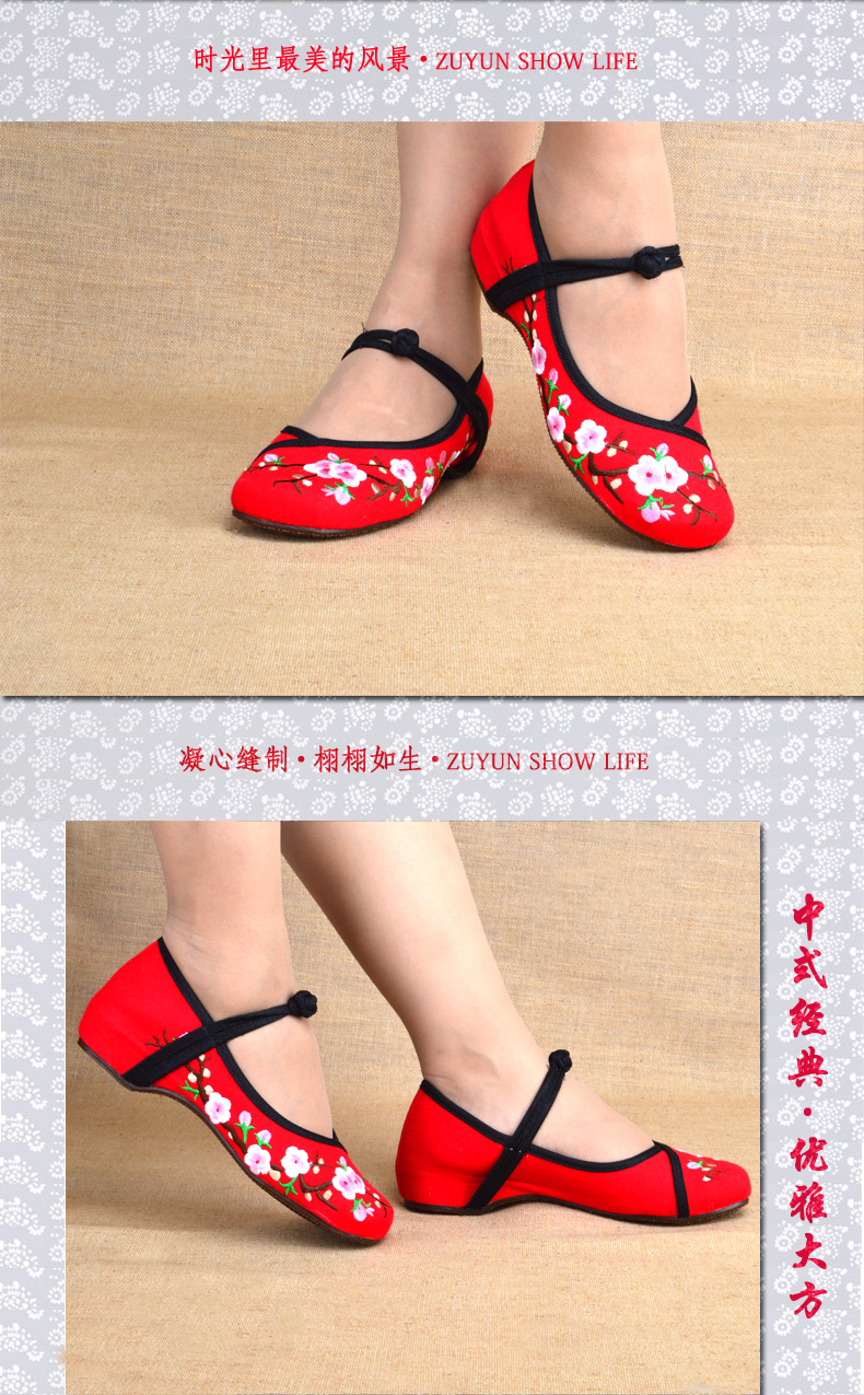15x-05紅35族韻2016新款老布鞋 牛筋底繡花鞋 內增高單鞋女鞋 廣場舞鞋