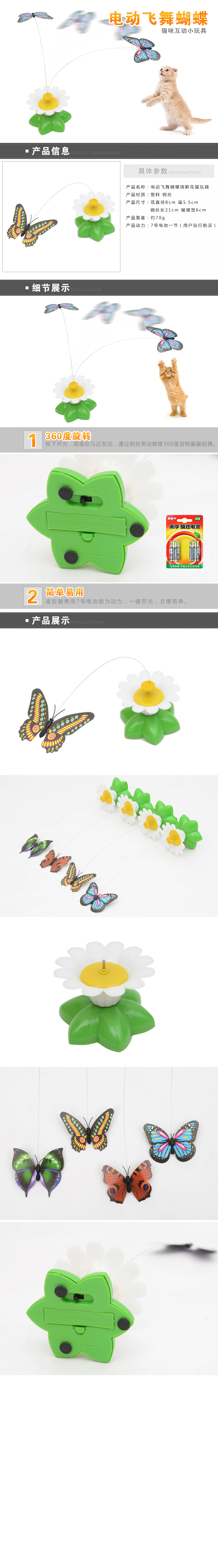 顏色隨機貓咪旋轉逗貓棒電動飛舞蝴蝶繞鮮花貓咪玩具