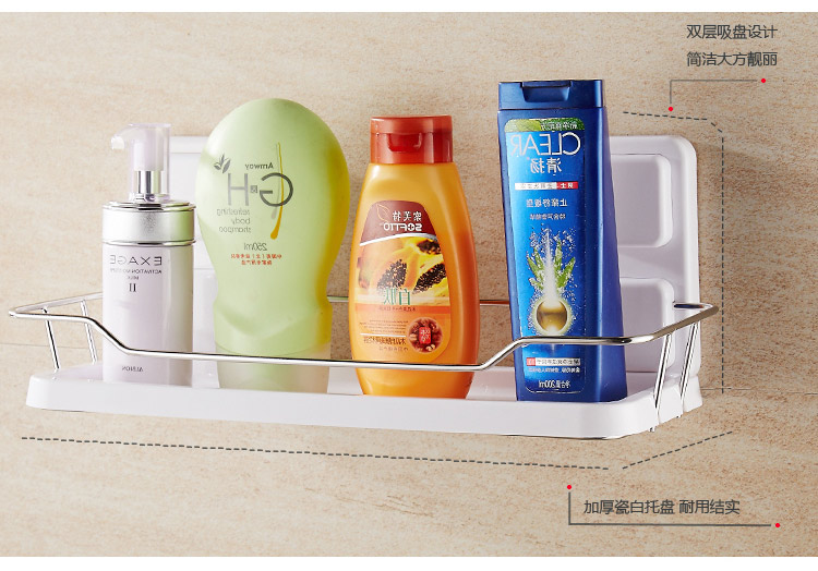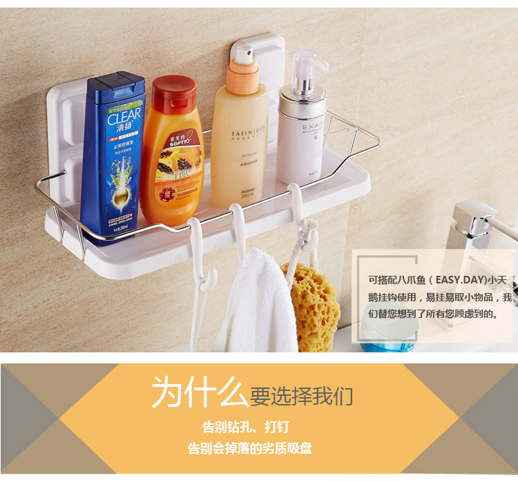 雙層送小掛鉤浴室置物架衛生間吸盤置物架壁掛洗手間廁所衛浴收納長方架