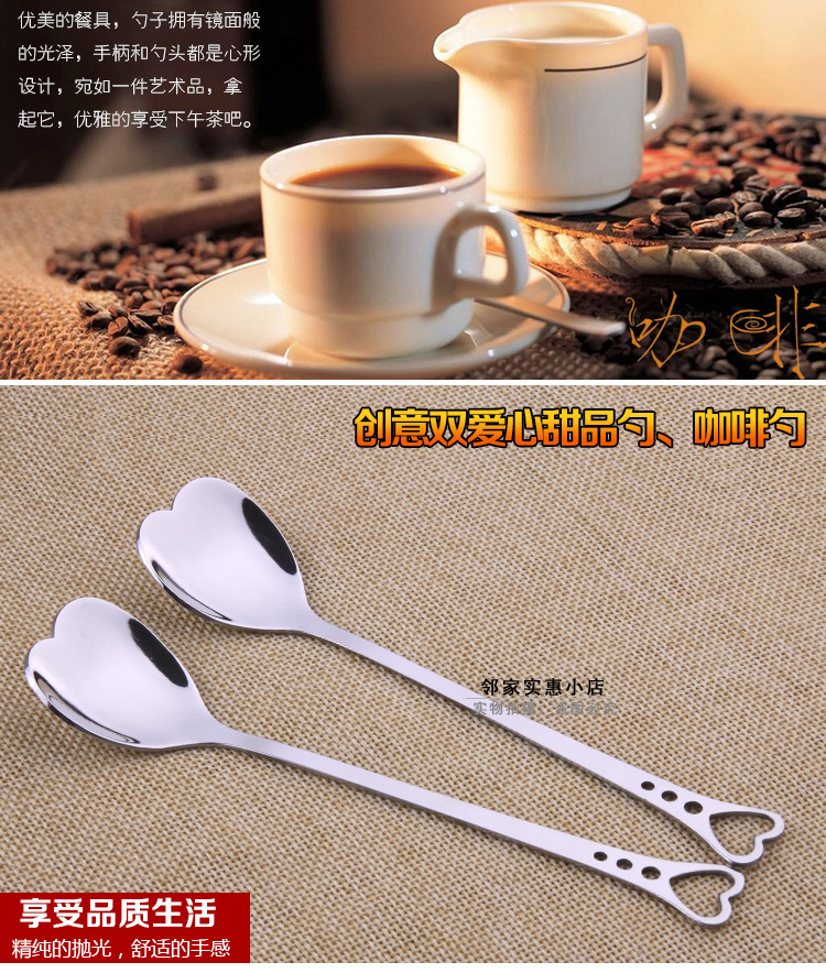 雙愛心優質不銹鋼情侶咖啡勺 鏤空甜品勺 奶茶勺 心形勺子 攪拌勺