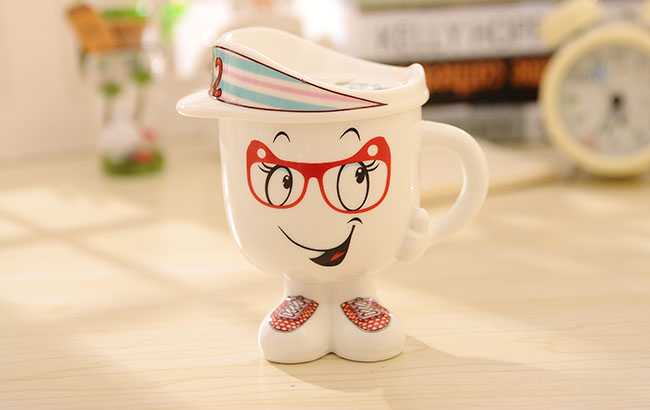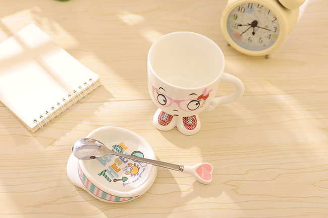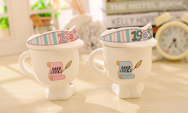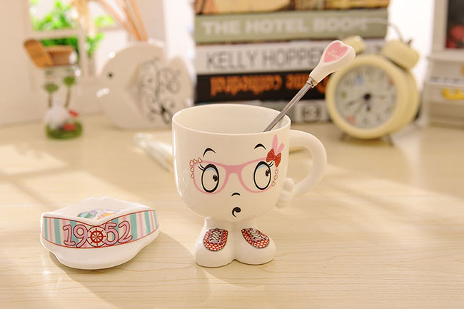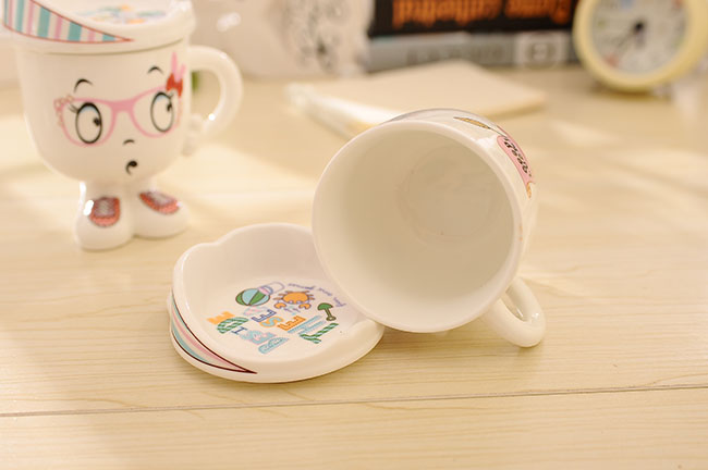 隨機發貨時尚創意潮流陶瓷杯可愛帶蓋牛奶杯韓版人形水杯情侶飲水杯子