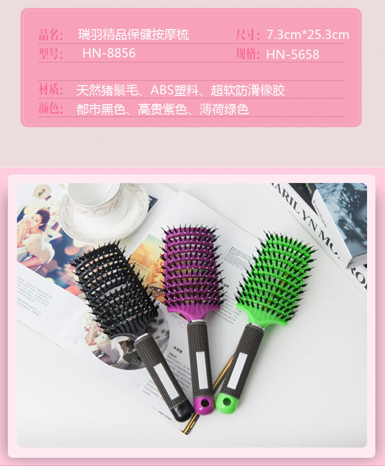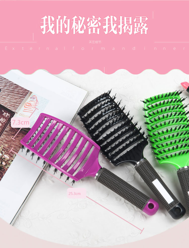 黑色正品超舒適按摩美發直發順發天使梳卷發排骨梳大背頭梳子全國