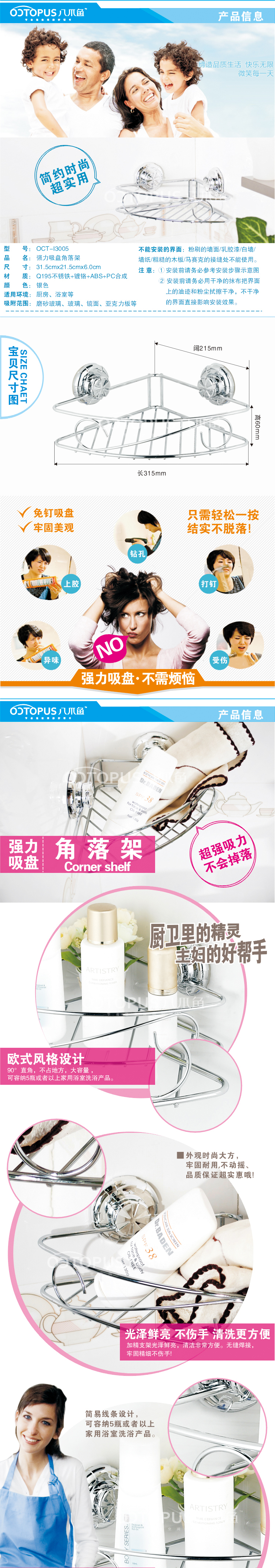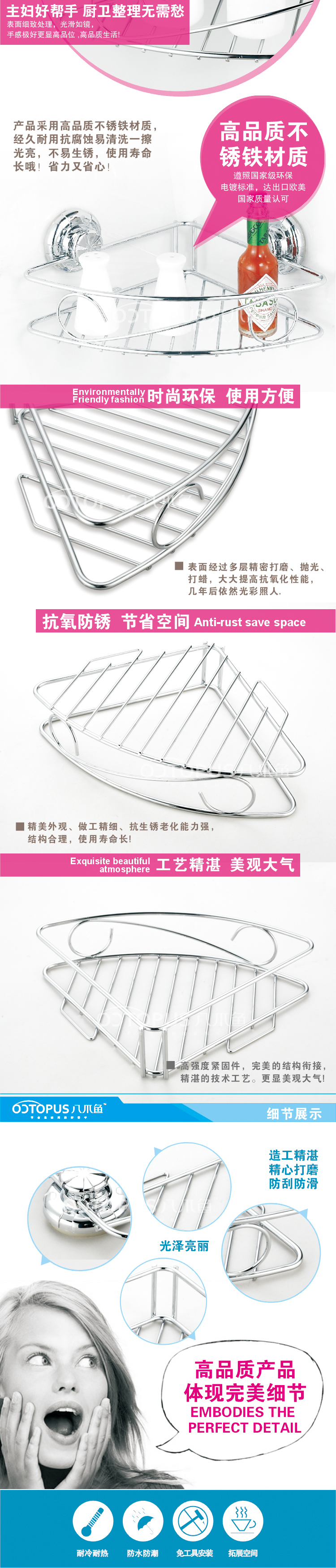 超強力吸盤浴室置物架廚房三角架儲物架收納架衛生間用品免釘無痕