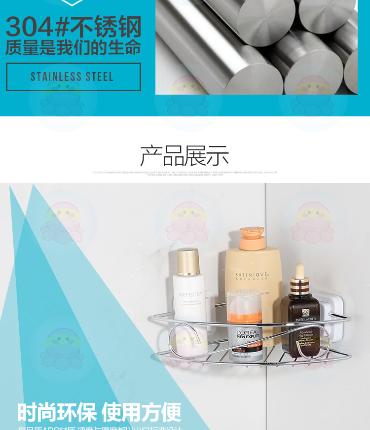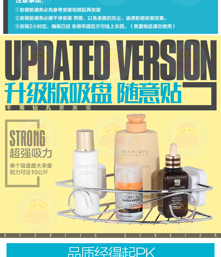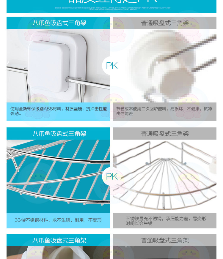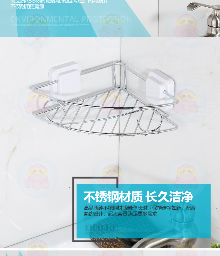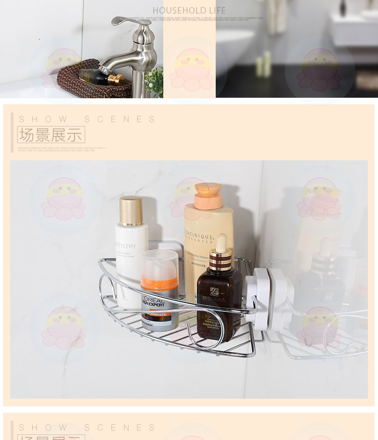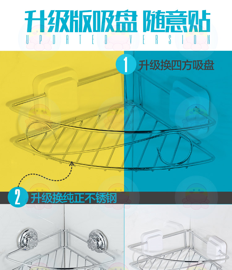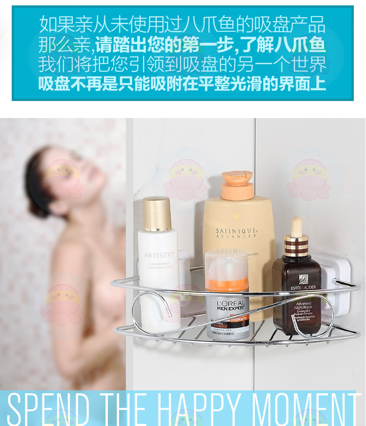 超強力304不銹鋼吸盤置物架廁所浴室置物架三角置物架吸壁式免釘