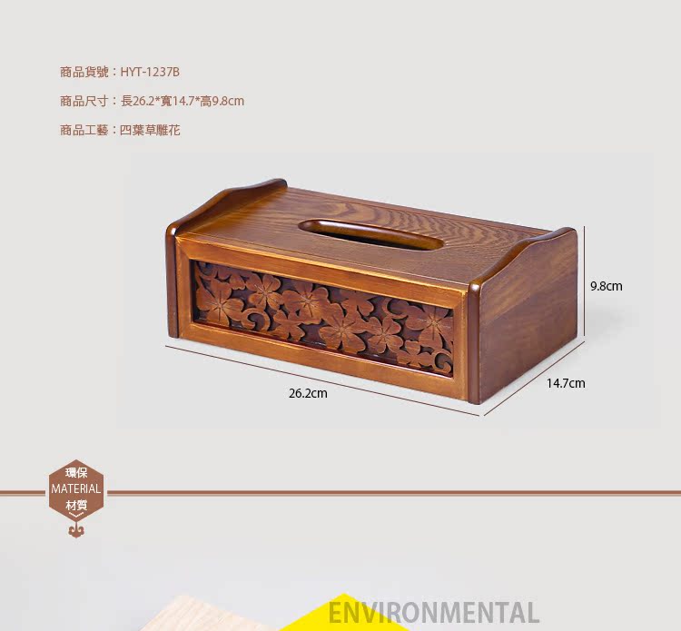 四葉草-仿古色弘藝堂木質紙巾盒歐式創意家用衛生紙抽紙盒復古客廳茶幾中式家居