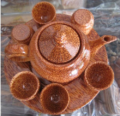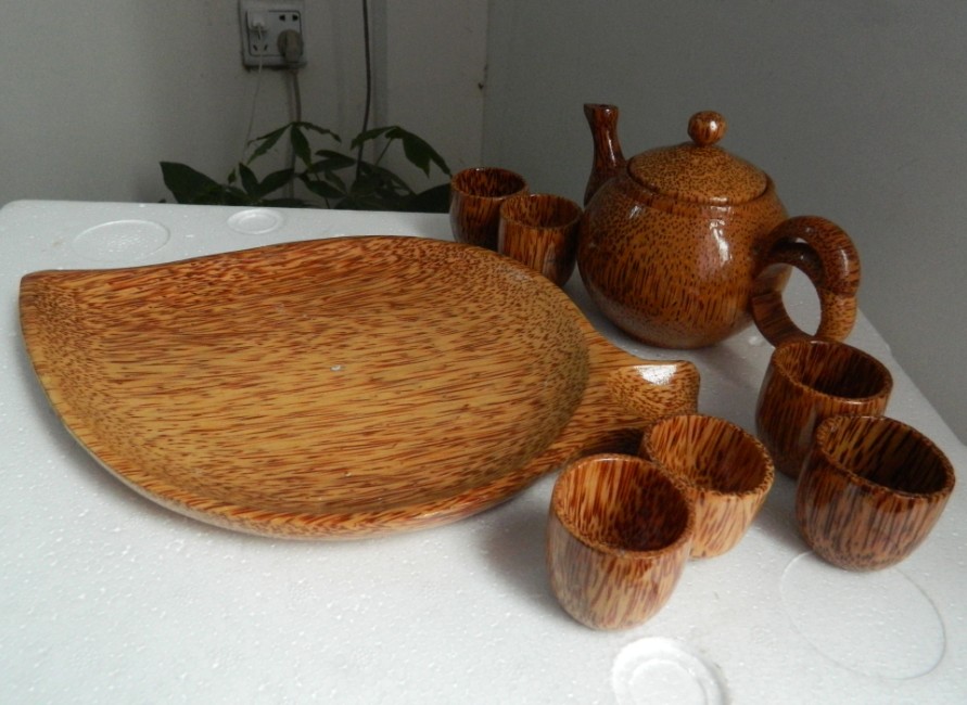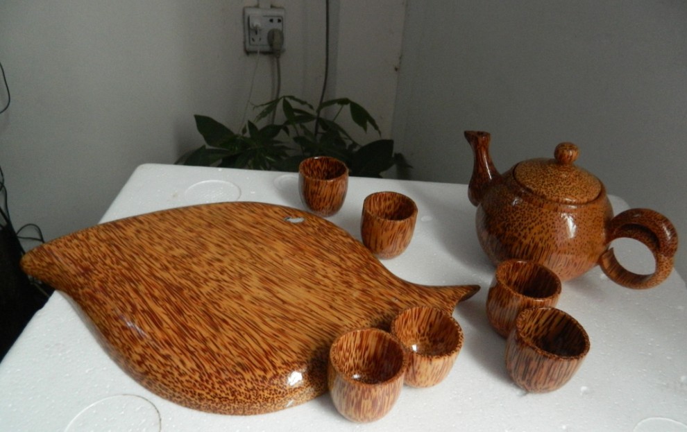 茶具茶杯木雕擺件 椰子木八件套 實木雕刻