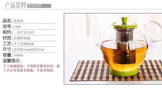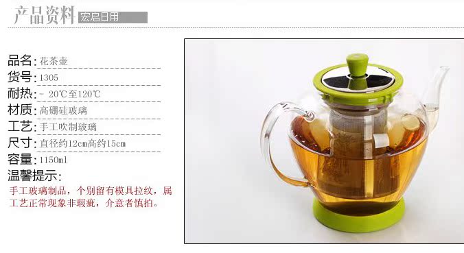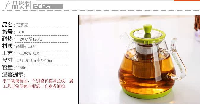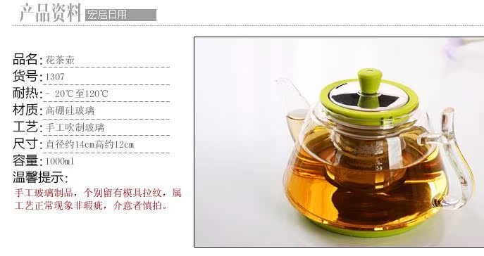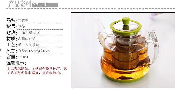 1309正品耐熱玻璃泡茶壺 不銹鋼過濾 大容量沖泡壺花茶沖泡器
