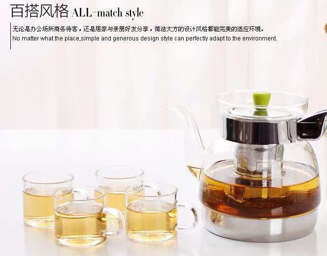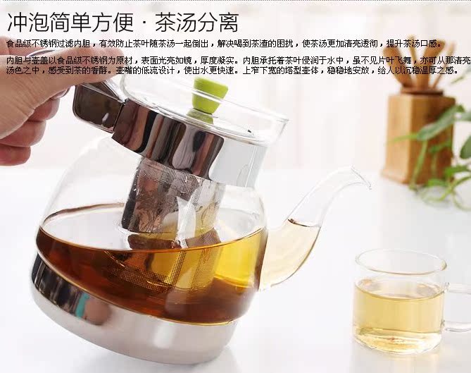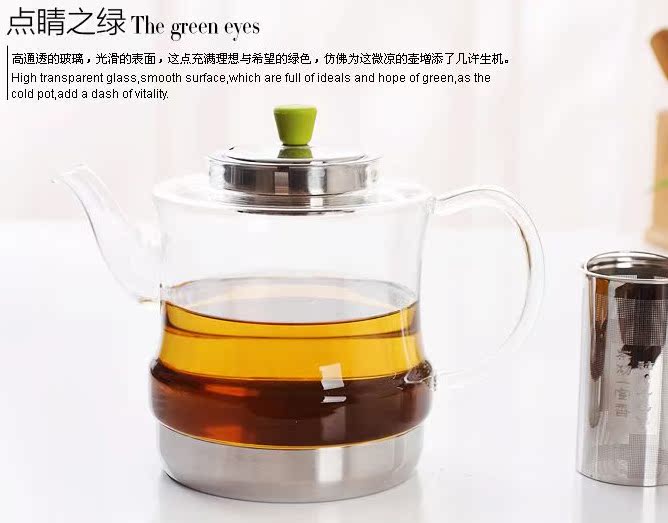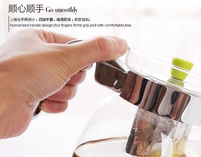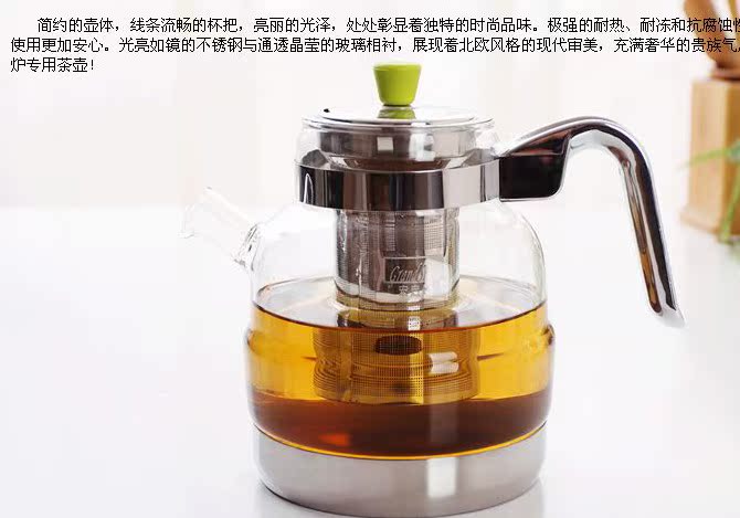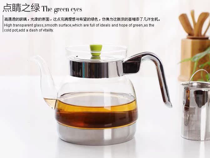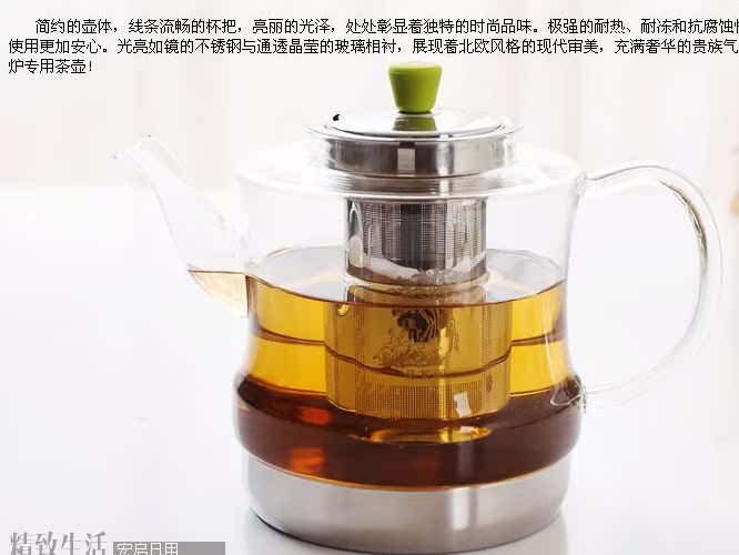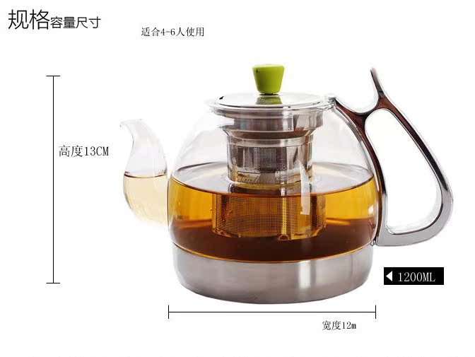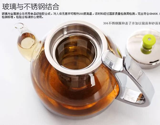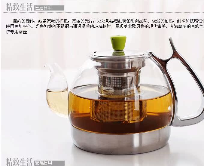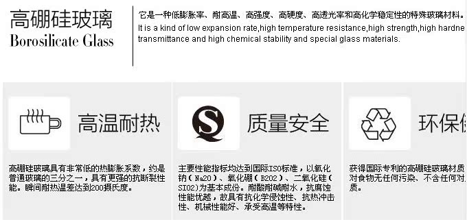 【產品特點】: 此產品可以在電磁爐上使用電磁爐功率?1500W。此產品采用高端技術,以不銹鋼底座粘玻璃壺身,塑料手柄不燙手,不銹鋼蓋子,過濾網是鋼板沖孔網。融入了實用與健康的結合。 【特別介紹】: 本產品玻璃部分采用高硼硅燈光管玻璃料,人工吹制而成。純度高亮度好,耐腐蝕性高而更健康環保,機械強度高而更安全,是一般高硼硅玻璃無法相比的。人工吹制的工藝,使產品無模痕,晶瑩剔透,更是一般的機吹產品無法達到的。 【材質】: 1.玻璃部分:膨脹系數為3.3高硼硅綠色環保玻璃,瞬間極變溫差:-20℃至180℃。 2.五金部分:優質不銹鋼 3.塑料部分手柄:全新環保級ABS塑料,多層環保絡電鍍 【功能特點】: 1.此產品可以在電磁爐,煤氣爐,酒精爐,電爐等加熱工具上進行加熱,也可從冰箱拿出,立即倒入沸騰的水而不炸裂。 2.不銹鋼底座可避免外界的沖擊和碰撞。 3.玻璃壺身,采用高硼硅耐高溫綠色環保玻璃,人工吹制,晶瑩剔透,質感好。具有較強的機械強度,及對急冷急熱溫度變化有很強的性能表現。耐腐蝕性很強。容易清洗,且不吸附茶的味道。 4.壺內帶有不銹鋼鋼板沖孔過濾網,規正美觀,不銹鋼濾網可隨意取放,更容易調節茶湯的濃淡 5.手柄是塑料的,不燙手,使用更安全。 6.簡易的可拆卸式設計,更是便于清洗 7.本產品容量是1100毫升 8.有廠家提供的精美包裝盒 9.本產品適合煮咖啡,煮雞蛋,燒開水,熱牛奶、飲料等等,也可沖泡各種草茶,花茶等等,是一款多用壺。 10.是辦公室,家庭,茶藝館,酒店等場所煮咖啡、飲茶器皿的最佳選擇 【注意事項】: 特別注意:使用電磁爐,電磁爐的功率不要超過1500W 1.第一次使用時,請用中性清潔劑清洗干凈后,注入純凈水煮沸騰3分鐘倒掉,再次加入純凈水方可使用。 2.使用酒精爐等明火爐加熱時,火焰大小不要超過壺底部,以免燒壞手柄。 3.避免孩童使用本產品,以免燙傷,劃傷玻璃部分易碎 4.不可空燒 5.清洗時請使用柔軟的清潔棉和中性清潔劑,禁止使用鋼刷或有顆粒的洗滌劑本品屬易碎品,請小心清洗 6使用時避免強烈的沖擊和碰撞玻璃部分易碎 ![]() |