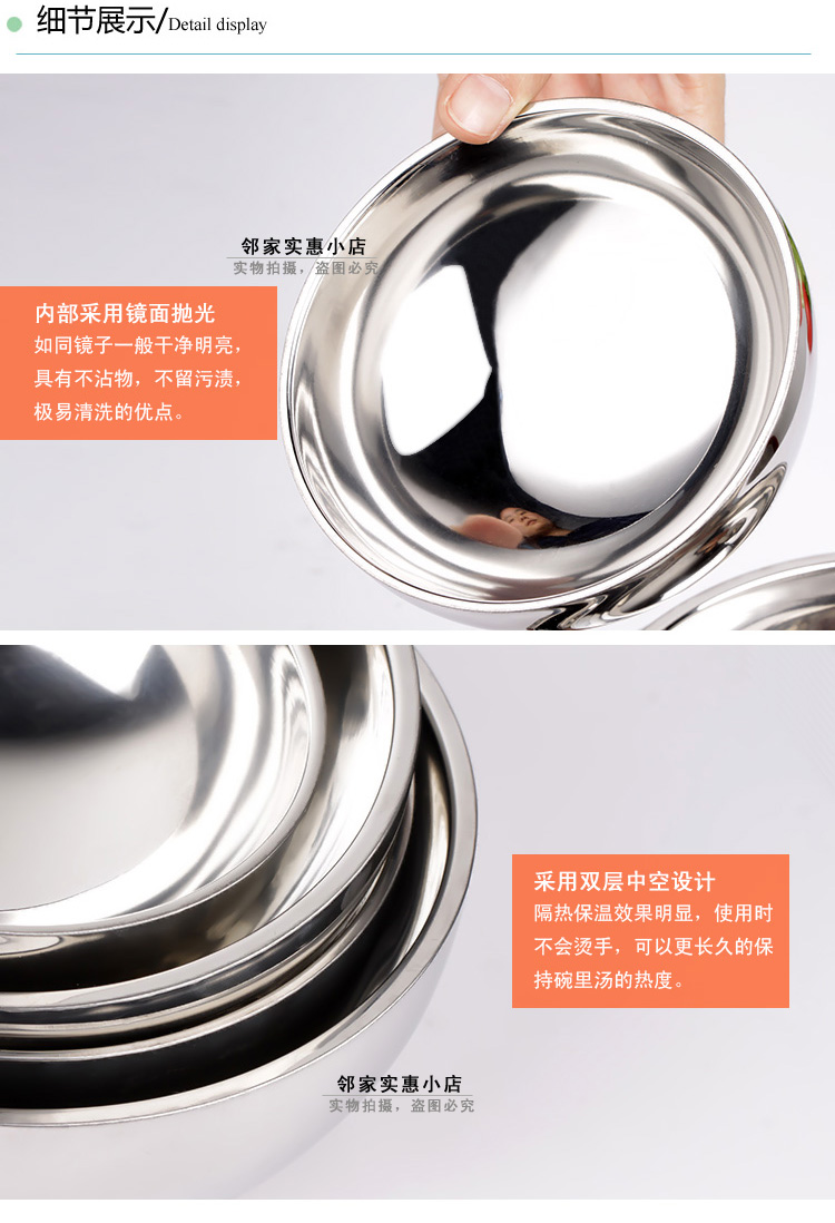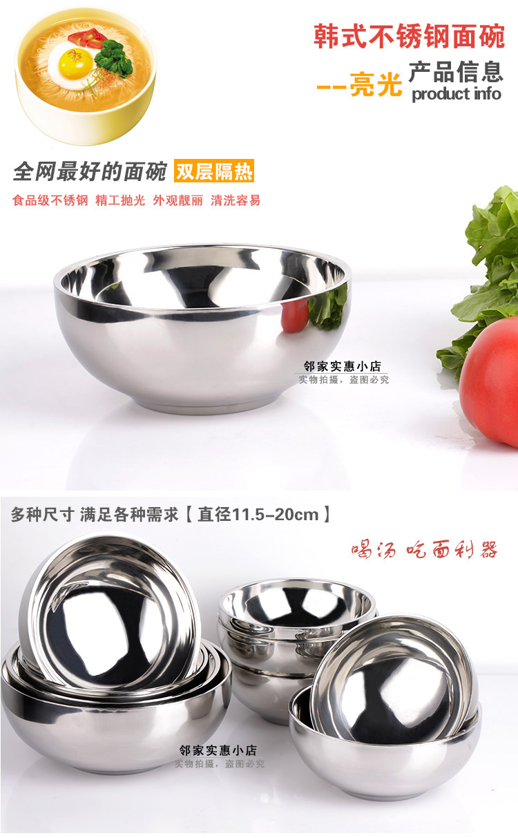 11.5cm亮光適合兒童碗雙層隔熱不銹鋼碗 砂光面碗亮光碗 加厚防燙湯碗 防摔碗
