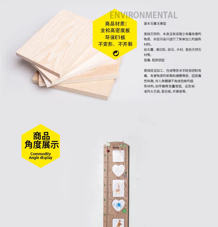 1073N中弘藝堂兒童木質立體身高尺幼稚園寶寶量身高貼可移除墻貼掛尺