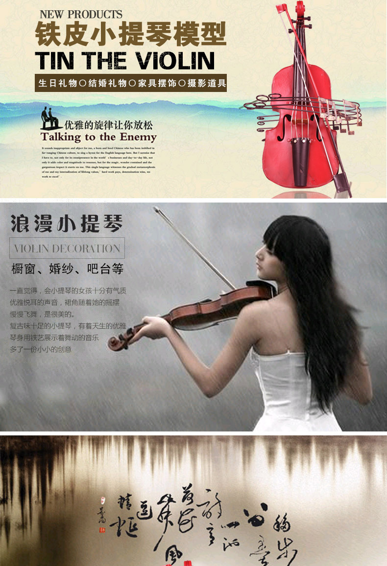 鐵制小提琴模型 攝影道具 生日禮物 結婚禮物 創意禮品