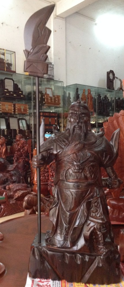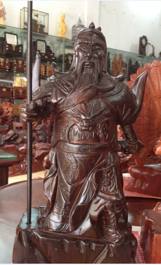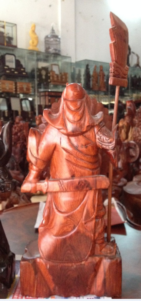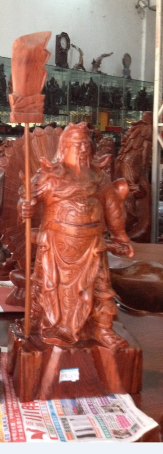 此尊紅木武財神“關公”,長髯眉鳳目,手執青龍偃月刀,不單威武非凡,而且正氣凜然,他不但能招財進寶,更可以護財避邪。擺放時應面向屋外,或是面向大門,這樣一方面既可招財入屋,同時又可鎮守門戶,不讓外邪入侵!