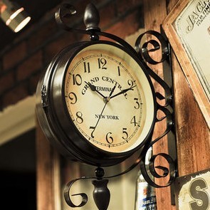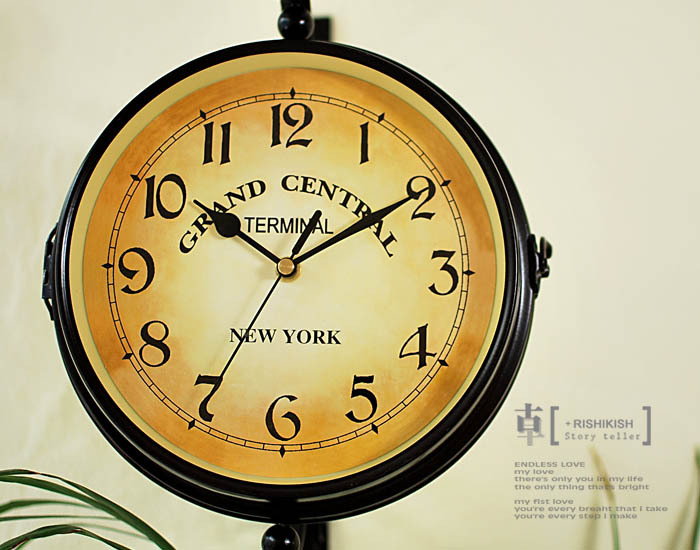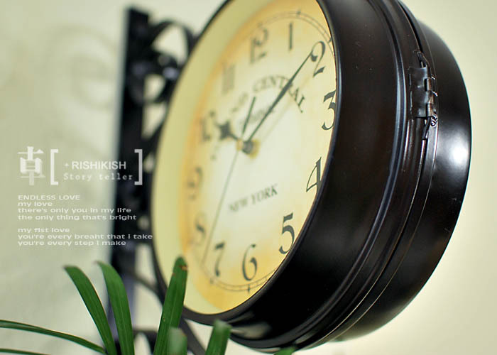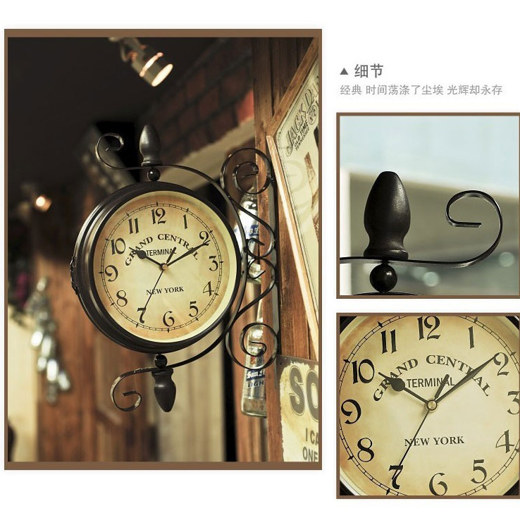 韓國 歐式鐵藝仿古雙面鐘 可旋轉 咖啡館酒吧風格 歐美風裝飾