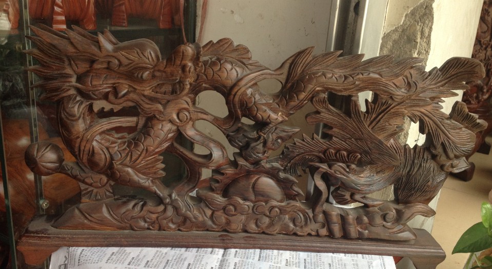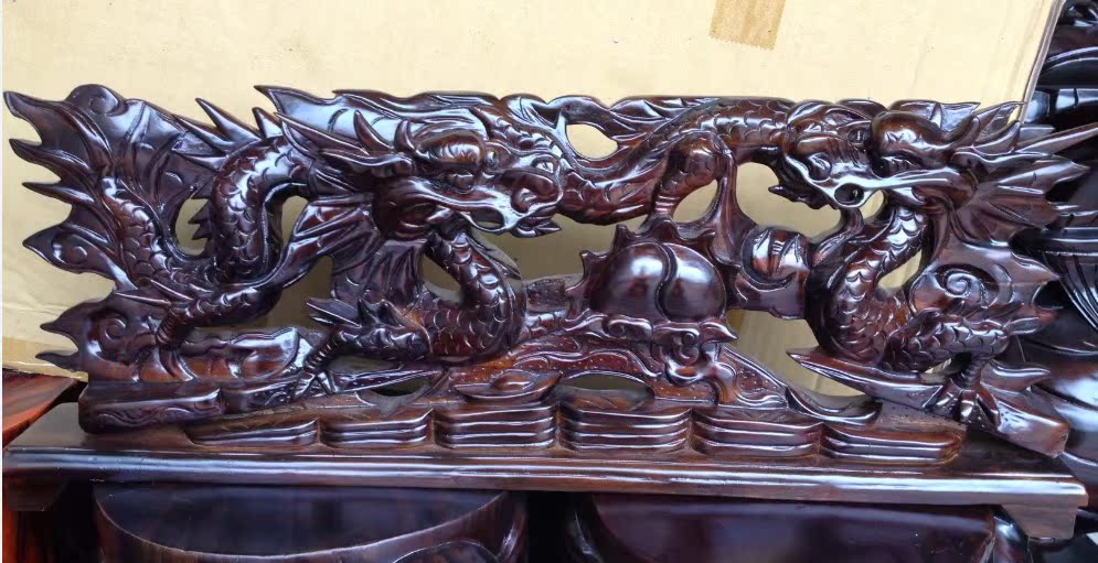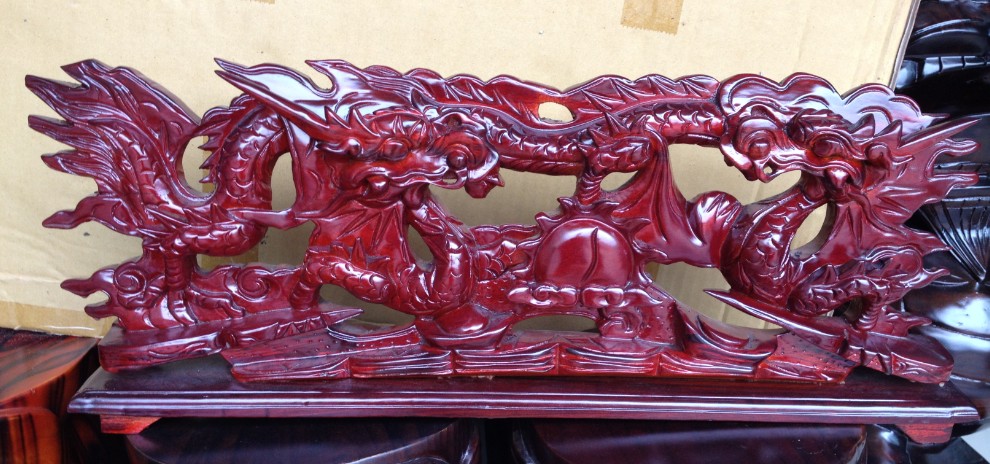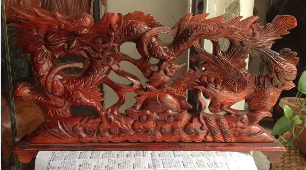 雞翅木真 龍 戲鳳 紅木生肖龍 實木雕刻