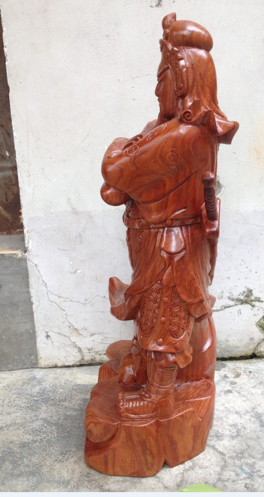 緬甸花梨木整木高50厘米黃花梨木雕關公擺件 武財神關羽木雕神像實木 紅木關公禮品工藝品