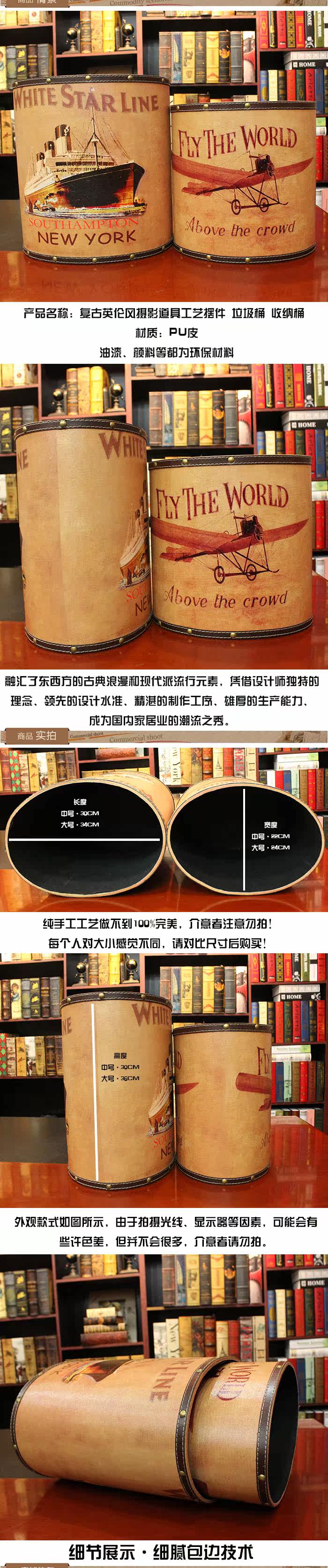 樣品房裝飾背景工藝擺件 復古英倫攝影道具 垃圾桶收納桶 二件套