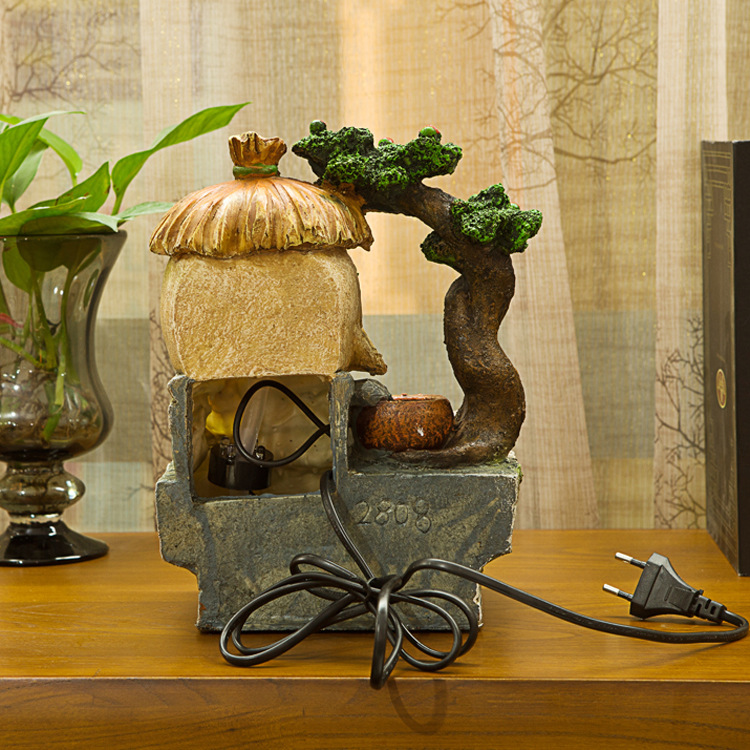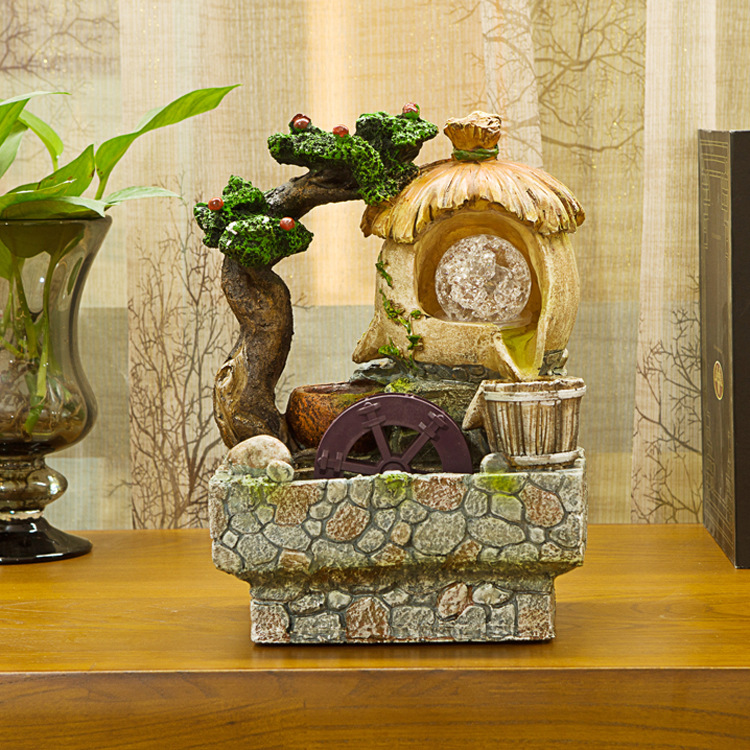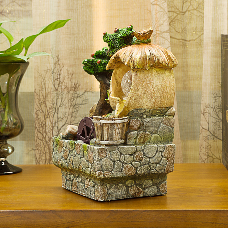 滾珠彩燈款 草堂樹脂風水流水擺件 噴泉水景擺件 高檔裝飾送禮