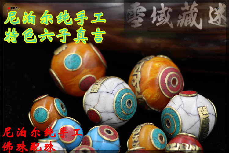 特色尼泊爾純手工佛珠配飾 隔珠 六字真言 25mm左右 特價批發 【掌柜推薦】