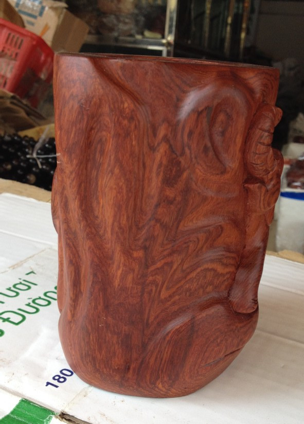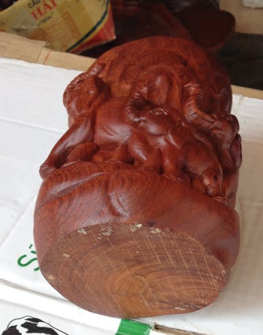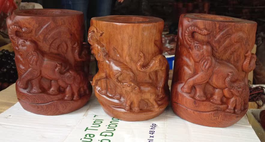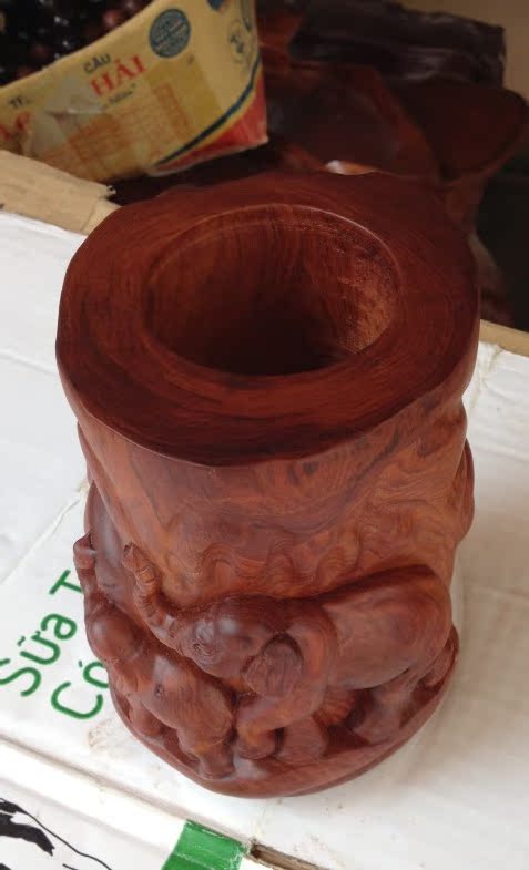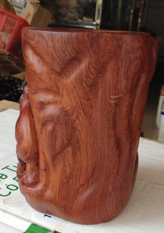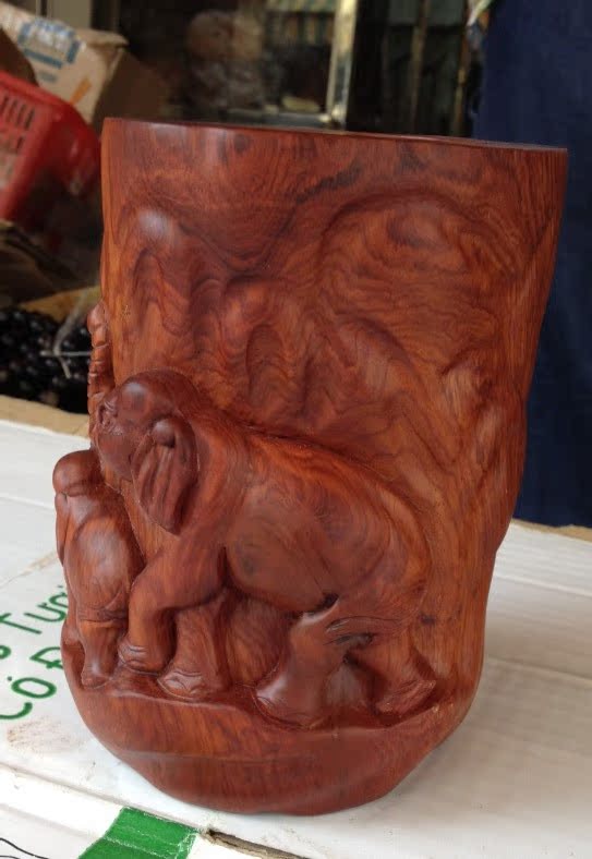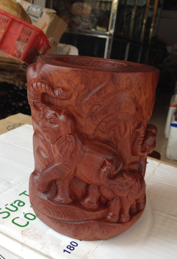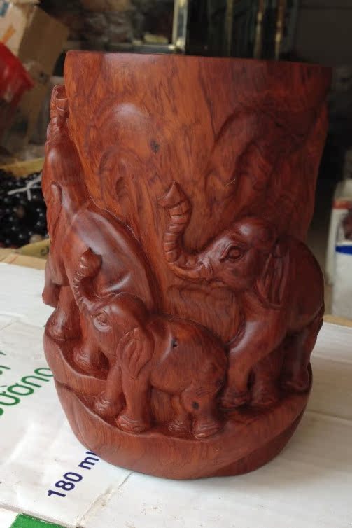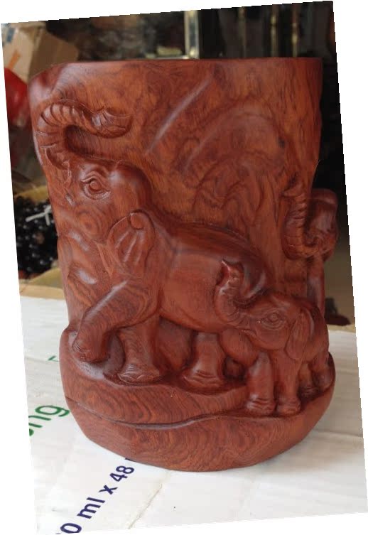 緬甸花梨木筆筒 雕三象 做工精致紋理漂亮 獨一無二